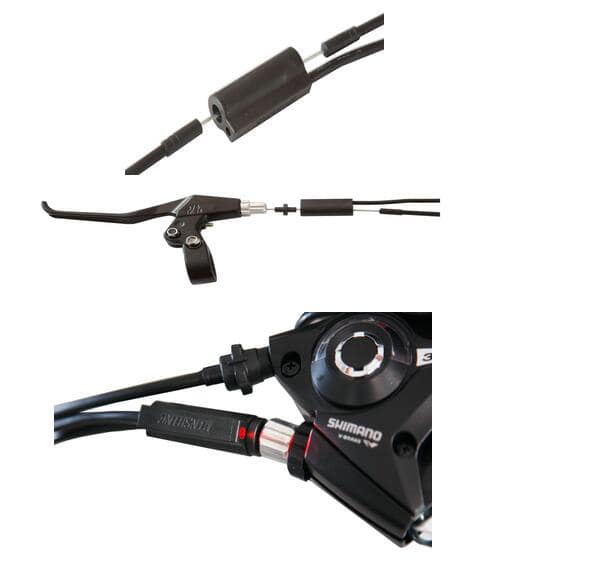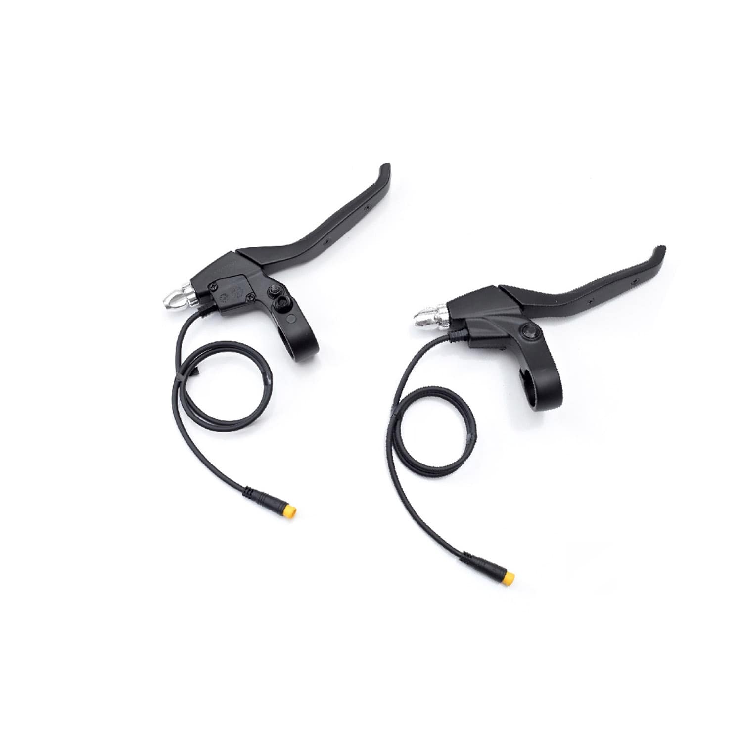 Die mechanischen Bremssensoren gibt es in zwei Ausführungen. Sie können entweder Bremsgriffe mit integriertem Sensor wählen. In diesem Fall müssen Sie nur die Bremsgriffe Ihres Fahrrads austauschen und den Sensor an den Controller/ Hauptkabelbaum anschließen.