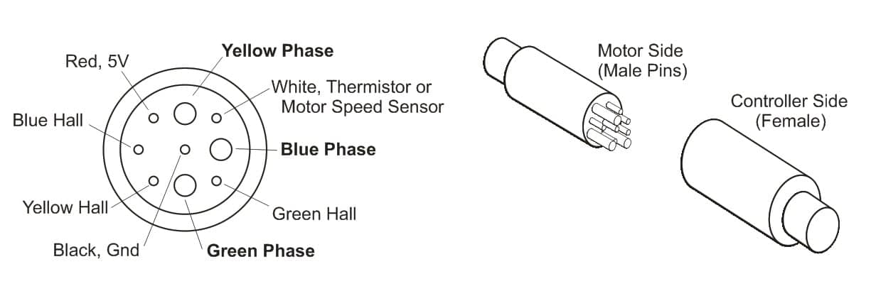 Für jede Motorphase gibt es einen Hallsensor. Diese sitzen im Motor und geben Rückmeldung über die momentane Position des Motors. Durch diesen Informationsaustausch zwischen Motor und Controller kann der Controller den Motor besser regulieren, was für ein ruckelfreies Laufen des Motors sorgt.