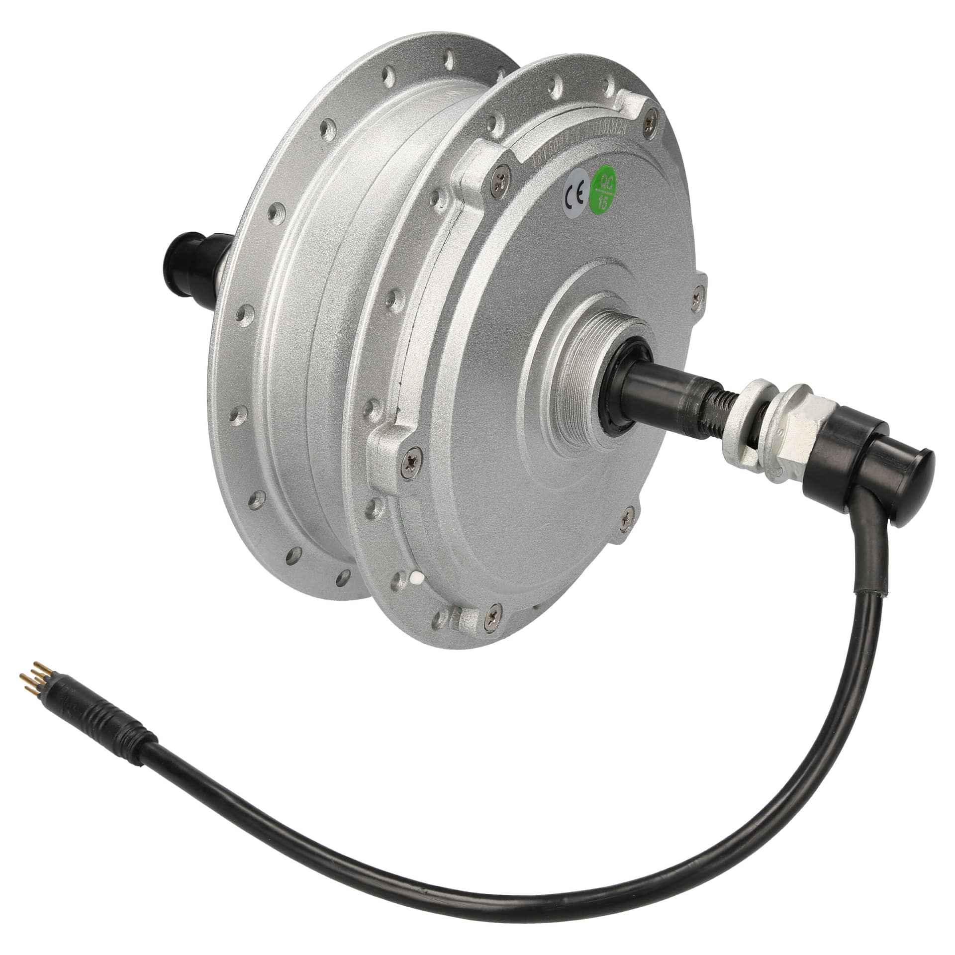 Unsere E-Bike Nabenmotoren zeichnen sich durch seine hohe Qualität und Kompatibilität aus. Mit diesen Nabenmotoren lässt sich nahezu jedes Fahrrad kinderleicht auf ein E-Bike / Pedelec umrüsten. Der große Vorteil getriebeübersetzter Nabenmotoren ist, dass das umgebaute Rad auch wie ein ganz normales Fahrrad betrieben werden kann, wenn gerade keine elektrische Unterstützung gewünscht wird. Es kommt zu keinen zusätzlichen Reibungsverlusten oder Tretwiderständen. Das verbaute Planetengetriebe und der bürstenlose Motor sind technisch präzise aufeinander abgestimmt und bieten dadurch ein einzigartiges E-Bike Erlebnis. Die Motoren überzeugen mit ihrer Laufruhe und Leistungsstärke auch bei niedrigen Drehzahlen. Trotz seines geringen Gewichtes und der kompakten Größe kann der Nabenmotor dank seiner Getriebeübersetzung ein hohes Drehmoment aufweisen. Alle Komponenten sind gemäß höchsten Industriestandards geprüft, nach denen weder Staub noch Nässe eindringen darf. Diese robuste Qualität und hochwertige Verarbeitung schätzen unsere Kunden im täglichen Einsatz, sei es auf dem Weg zur Arbeit oder einfach nur bei einer größeren Fahrradtour. Die Motoren verfügen über eine Standard-6-Loch Bremsscheibenaufnahme, die zur Montage Ihrer gegebenenfalls vorhandenen Bremsscheibe verwendet werden kann. Auch Backenbremsen sind mit diesem Motor beim Einsatz einer geeigneten Felge nutzbar.