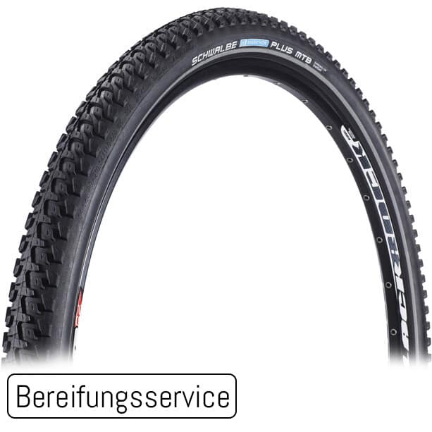 Wir bereifen Ihr Laufrad beziehungsweise Ihren eingespeichten Nabenmotor! Buchen Sie einfach diesen Service zu Ihrer Bestellung hinzu und Sie erhalten einen bereiften Motor oder eine bereifte Felge. Die Materialkosten sind im Preis inbegriffen, Sie müssen also nur den gewünschten Reifentyp wählen. Auch die Schläuche und Felgenbänder sind originale Schwalbe Produkte. Sie können zwischen Dunlop- und Autoventilen (Schraderventilen) wählen.