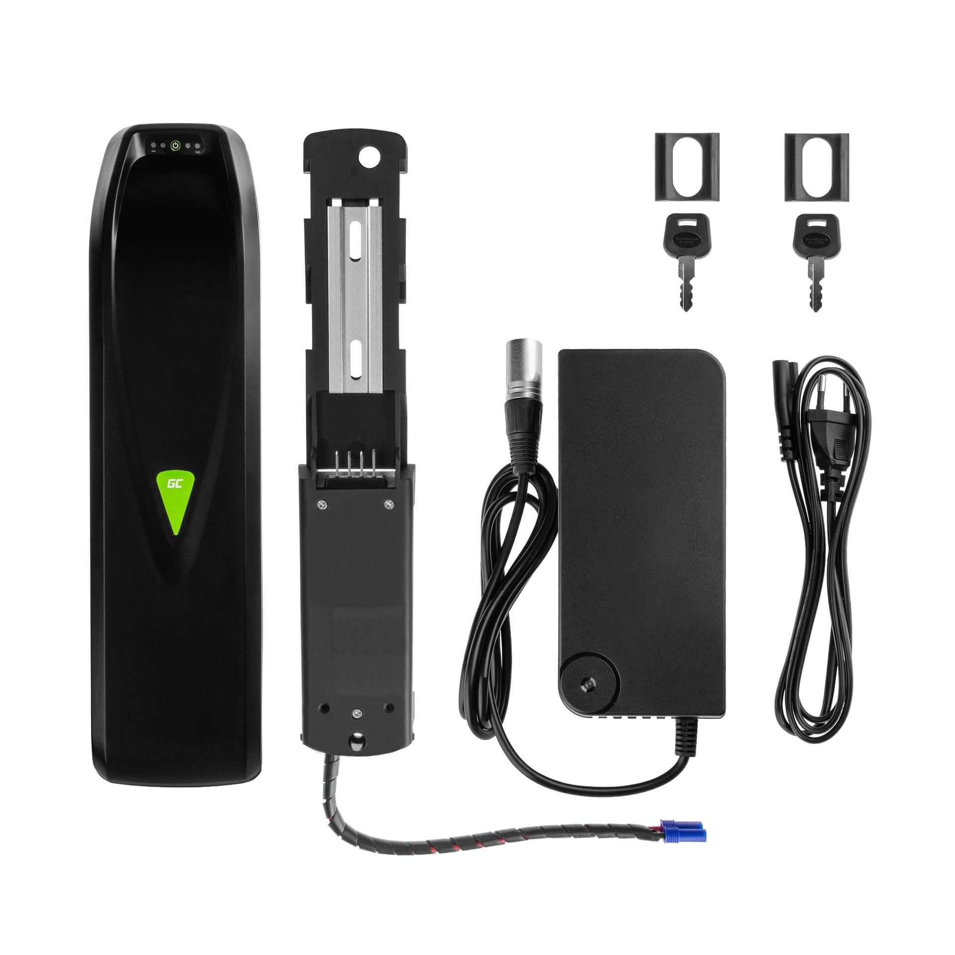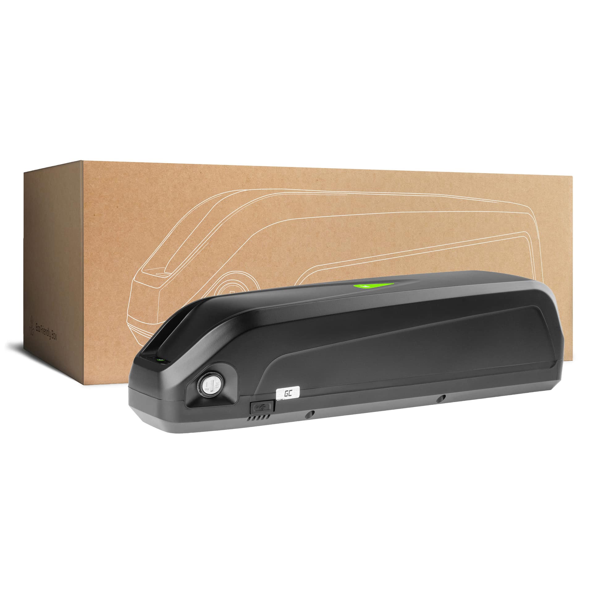 Der Akku stellt die Energie für Ihr E-Bike System zu Verfügung. Für ein optimales E-Bike Erlebnis empfehlen wir die Verwendung von hochwertigen Akkus. Diese Batterie von GreenCell erfüllt alle Anforderungen und ist perfekt mit unseren Systemen sowie nahezu jedem anderen E-Bike System kompatibel. Sie wird in Polen hergestellt. Der qualitativ hochwertige Akku verwendet ausschließlich GreenCell Zellen und ist für Systeme bis 750W Motorleistung ausgelegt. Zudem wird hier ein Battery-Managegement-System (BMS) verwendet, was sowohl ein Überladung als auch eine Tiefenentladung verhindert. Außerdem sorgt das BMS für eine lange Lebensdauer, so dass Sie möglichst viel von Ihrem Akku haben. An der Batterie selbst können Sie die aktuelle Ladung über eine LED-Anzeige ablesen. Auch ein Anti-Diebstahl-Schloss ist mit verbaut. Dank der Befestigungsschiene ist eine einfache und schnelle Entnahme vom Fahrrad auch jederzeit möglich, sollten Sie den Akku beispielsweise getrennt vom Rad laden wollen. Sie können den Akku über einen EC5-Stecker mit Ihrem E-Bike System verbinden.