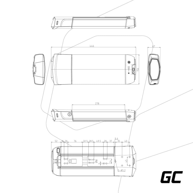 GreenCell | E-Bike Akku 36V 13Ah für Gepäckträger, EBIKE68STD