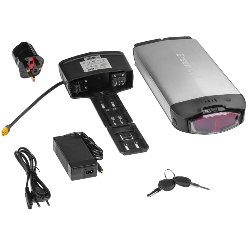 Der Akku stellt die Energie für Ihr E-Bike System zu Verfügung. Für ein optimales E-Bike Erlebnis empfehlen wir die Verwendung von hochwertigen Akkus. Diese Batterie von GreenCell erfüllt alle Anforderungen und ist perfekt mit unseren Systemen sowie nahezu jedem anderen E-Bike System kompatibel. Der qualitativ hochwertige Akku verwendet ausschließlich GreenCell Zellen und ist für Systeme bis 500W Motorleistung ausgelegt. Zudem wird hier ein Battery-Managegement-System (BMS) verwendet, was sowohl ein Überladung als auch eine Tiefenentladung verhindert. Außerdem sorgt das BMS für eine lange Lebensdauer, so dass Sie möglichst viel von Ihrem Akku haben. An der Batterie selbst können Sie die aktuelle Ladung über eine LED-Anzeige ablesen. Auch ein Anti-Diebstahl-Schloss ist mit verbaut. Dank der Befestigungsschiene ist eine einfache und schnelle Entnahme vom Fahrrad auch jederzeit möglich, sollten Sie den Akku beispielsweise getrennt vom Rad laden wollen. Sie können den Akku über einen XT60-Stecker mit Ihrem E-Bike System verbinden.