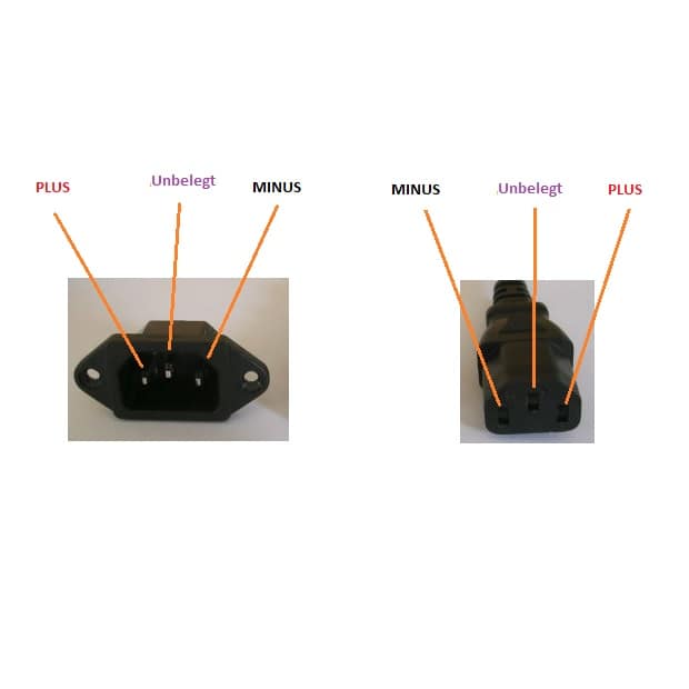 Der Akku verfügt über eine C13-Buchse, Sie können den Akku über einen C14Kaltgerätestecker mit Ihrem E-Bike System verbinden. Auch eine Konversion zu anderen Steckern wie Anderson-Powerpole oder XT-Stecker ist mithilfe eines Adapters problemlos möglich. Dieser Stecker ist als Adapter recht unüblich, Sie können jedoch die Stecker kaufen und den Adapter selber bauen. Oder Sie schneiden den Akkuausgang am Controller ab und klemmen einen C14-Stecker an.