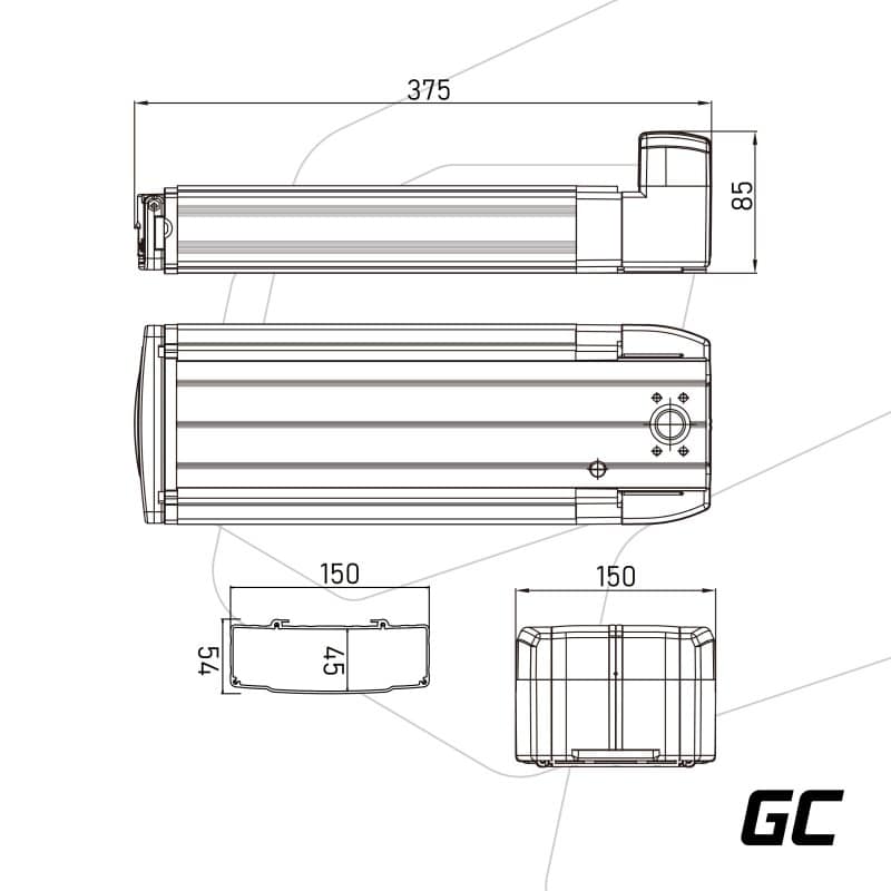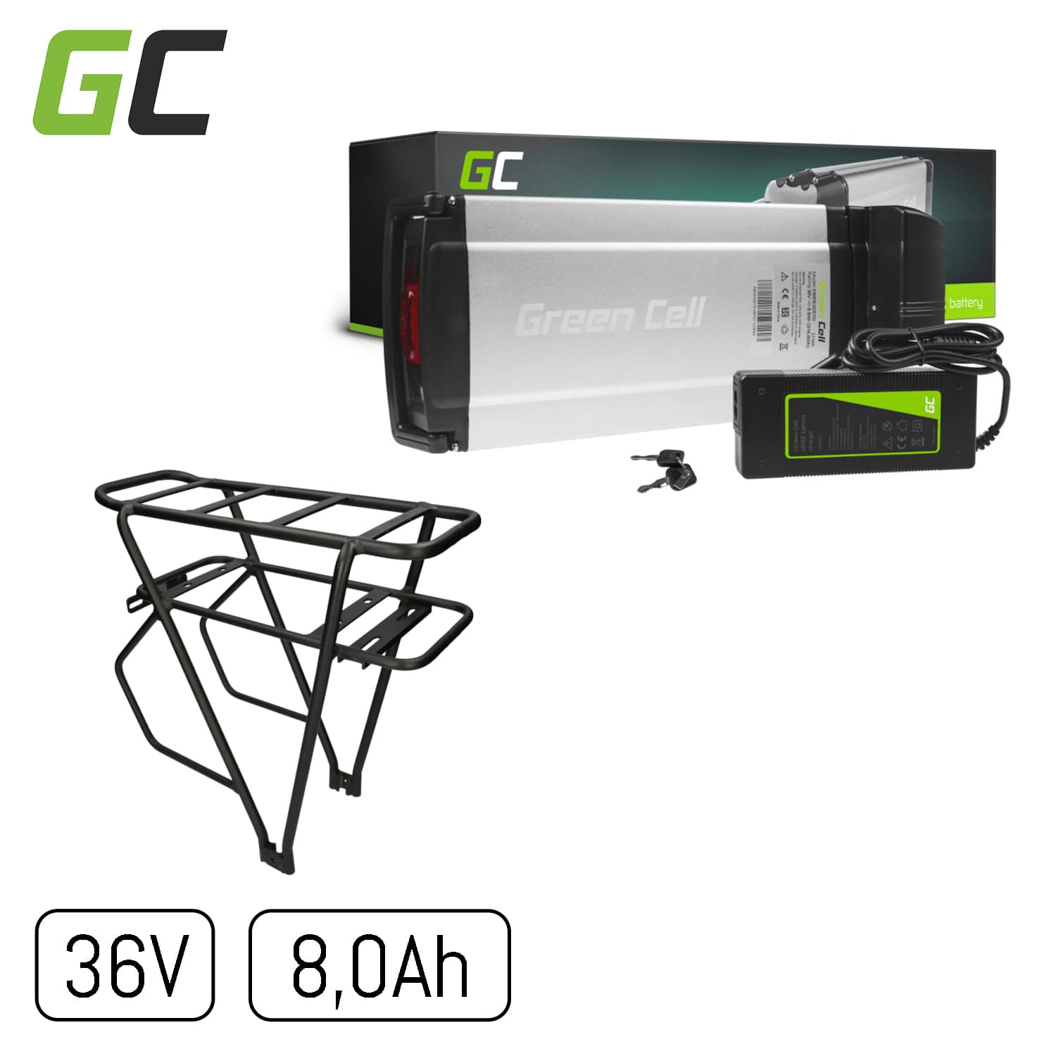 GreenCell | E-Bike Akku 36V 8Ah für Gepäckträger, EBIKE20STD