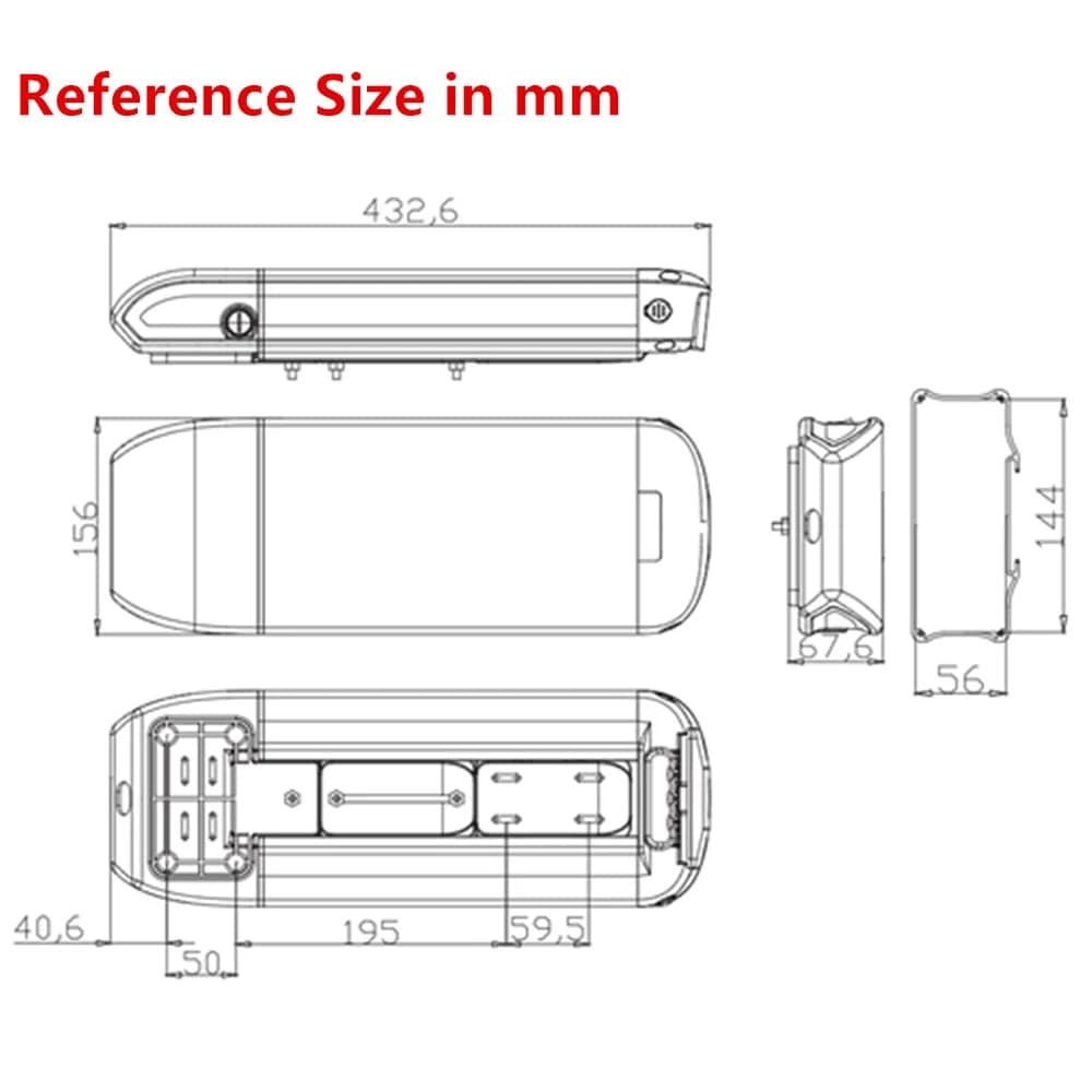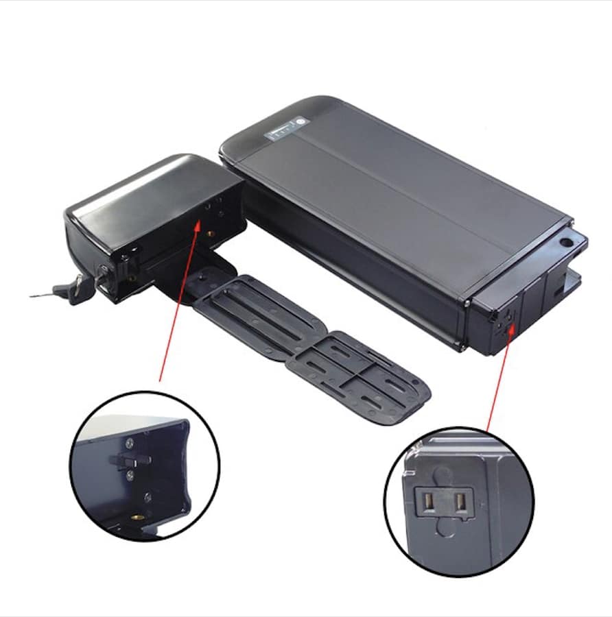 windmeile© | E-Bike Akku mit Samsung Zellen 36V oder 48V 14Ah für Gepäckträger mit 250W Controllergehäuse