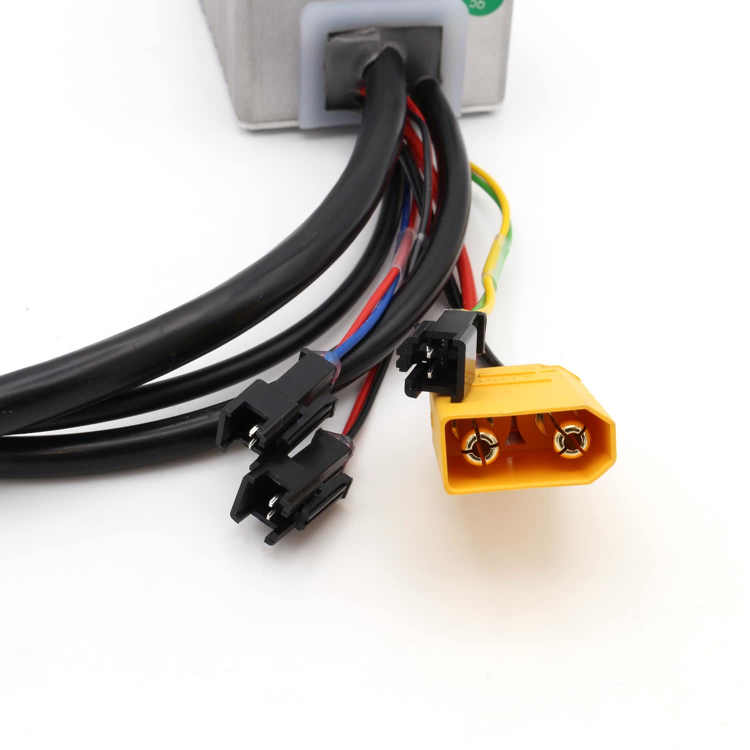 Der windmeile 48V 750W oder 1000W FOC Controller ist speziell für FAT-Bikes mit Bafang UART-System konzipiert und bietet eine leistungsstarke und zuverlässige Steuerung Ihres E-Bike-Motors. Mit einer Spannung von 48 Volt und wahlweise 750 Watt oder 1000 Watt Leistung passt sich der Controller flexibel Ihren individuellen Anforderungen an. Die moderne FOC-Kommutierung sorgt für einen effizienten und leisen Betrieb, während der integrierte Motortemperatursensor eine sichere Nutzung gewährleistet. Der Controller verfügt über einen Akku-Stecker vom Typ XT90, der eine stabile Verbindung garantiert. Ein Lichtausgang ist ebenfalls integriert, sodass Sie Ihre Beleuchtung bequem über den Controller steuern können. Obwohl kein Bremslichtanschluss vorhanden ist, überzeugt das Gerät durch seine Programmierbarkeit, die eine individuelle Anpassung an Ihr E-Bike ermöglicht. Mit diesem Controller erhalten Sie eine hochwertige Lösung, die sowohl Leistung als auch Sicherheit in den Vordergrund stellt und Ihr FAT-Bike optimal unterstützt.