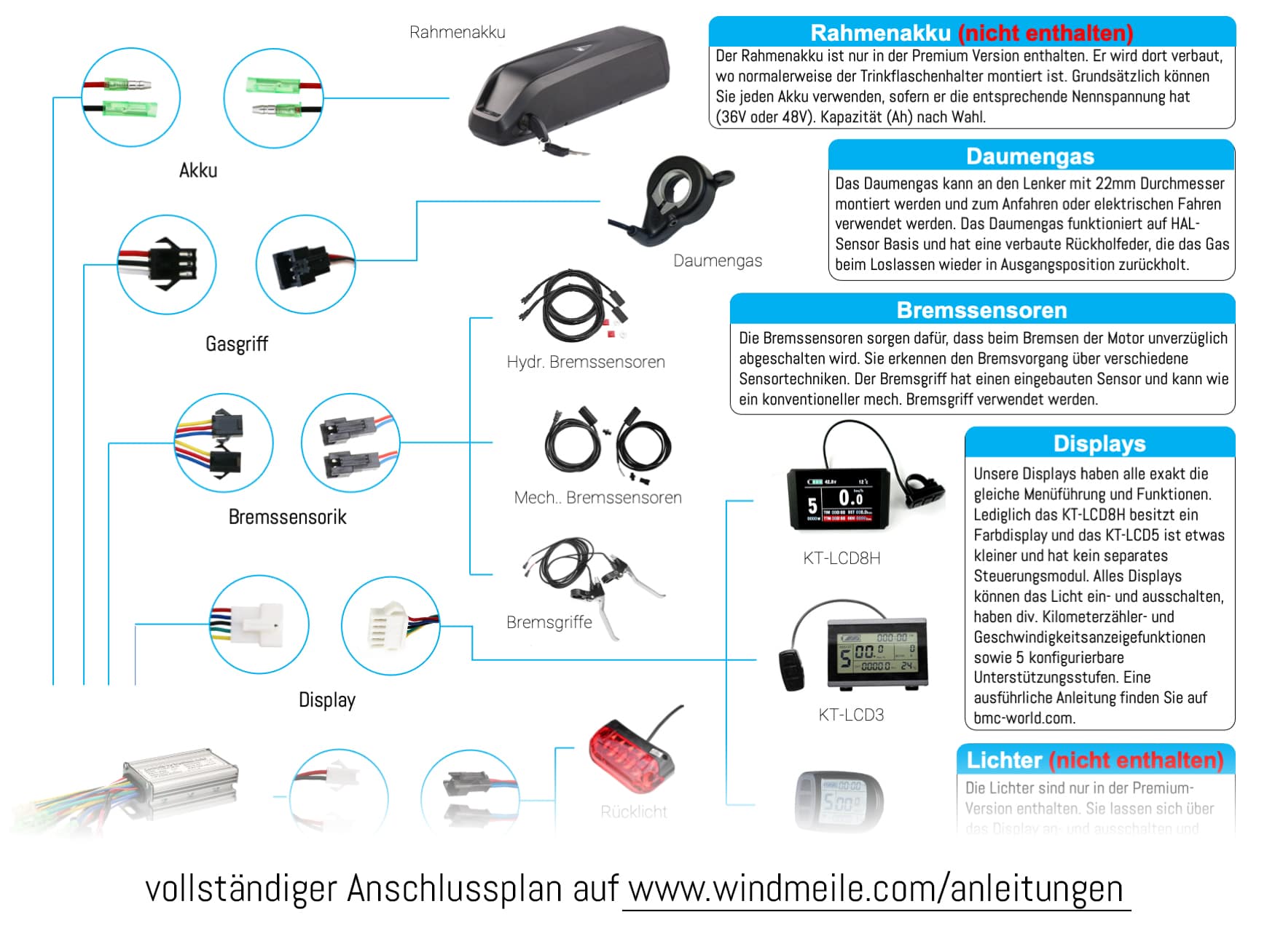 Bei unseren windmeile© E-Bike Umbausätzen unterscheiden wir zwischen zwei Steckersystemen, dem „Professional“-System und dem „Waterproof“-System. Das „Professional“-System ist für Profis mit handwerklichem Geschick, wohingegen das „Waterproof“-System auch für Anfänger mit weniger Erfahrung geeignet ist. Durch Versiegelung, Schrumpfschläuche und dem Einsatz unserer Controller Box kann auch das „Professional“-System wasserdicht eingesetzt werden. Bei diesem Artikel handelt es sich um das „Professional“-System.