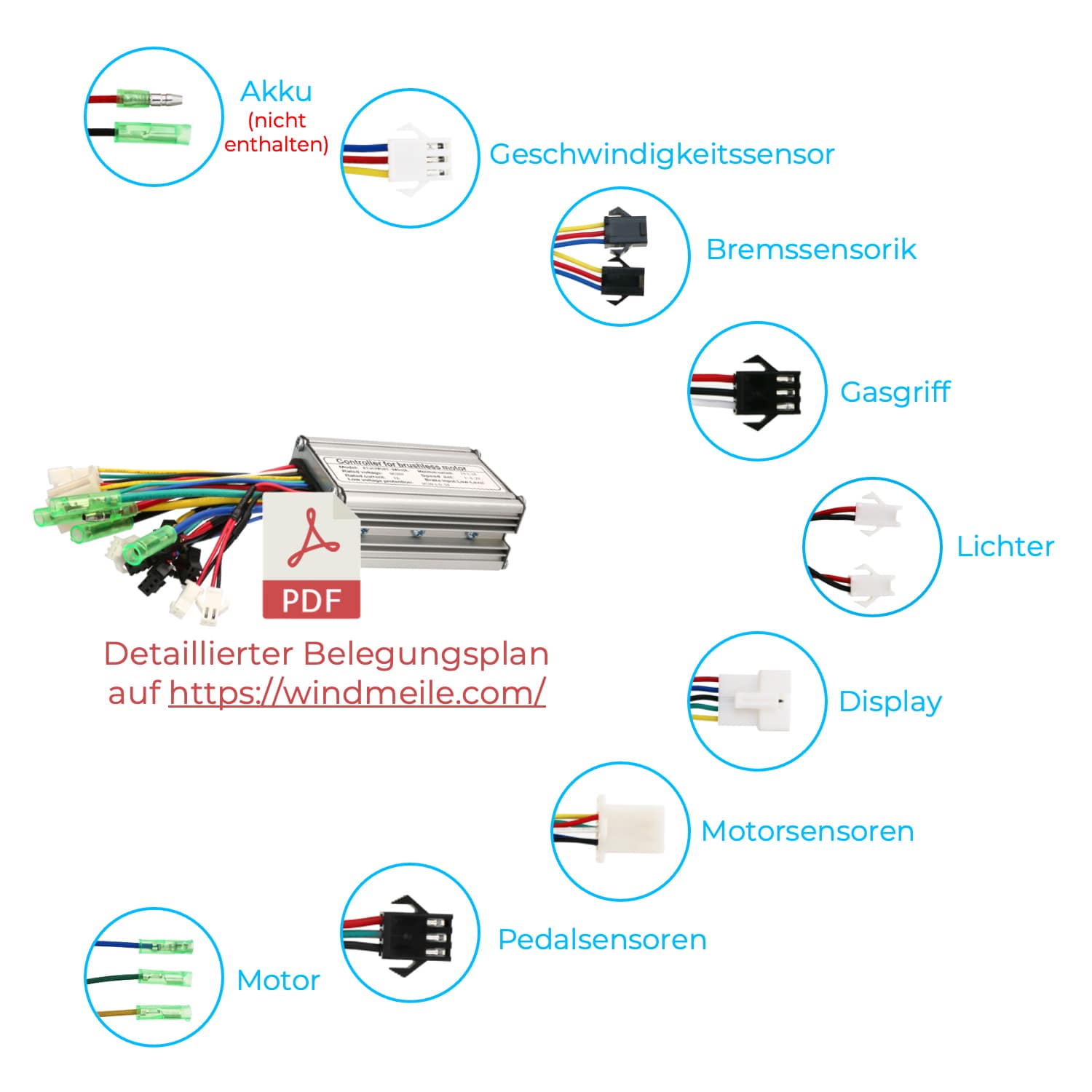 windmeile© | Controller 24V 36V 48V Steuergerät 250W 350W 500W 750W 1000W Professional Block