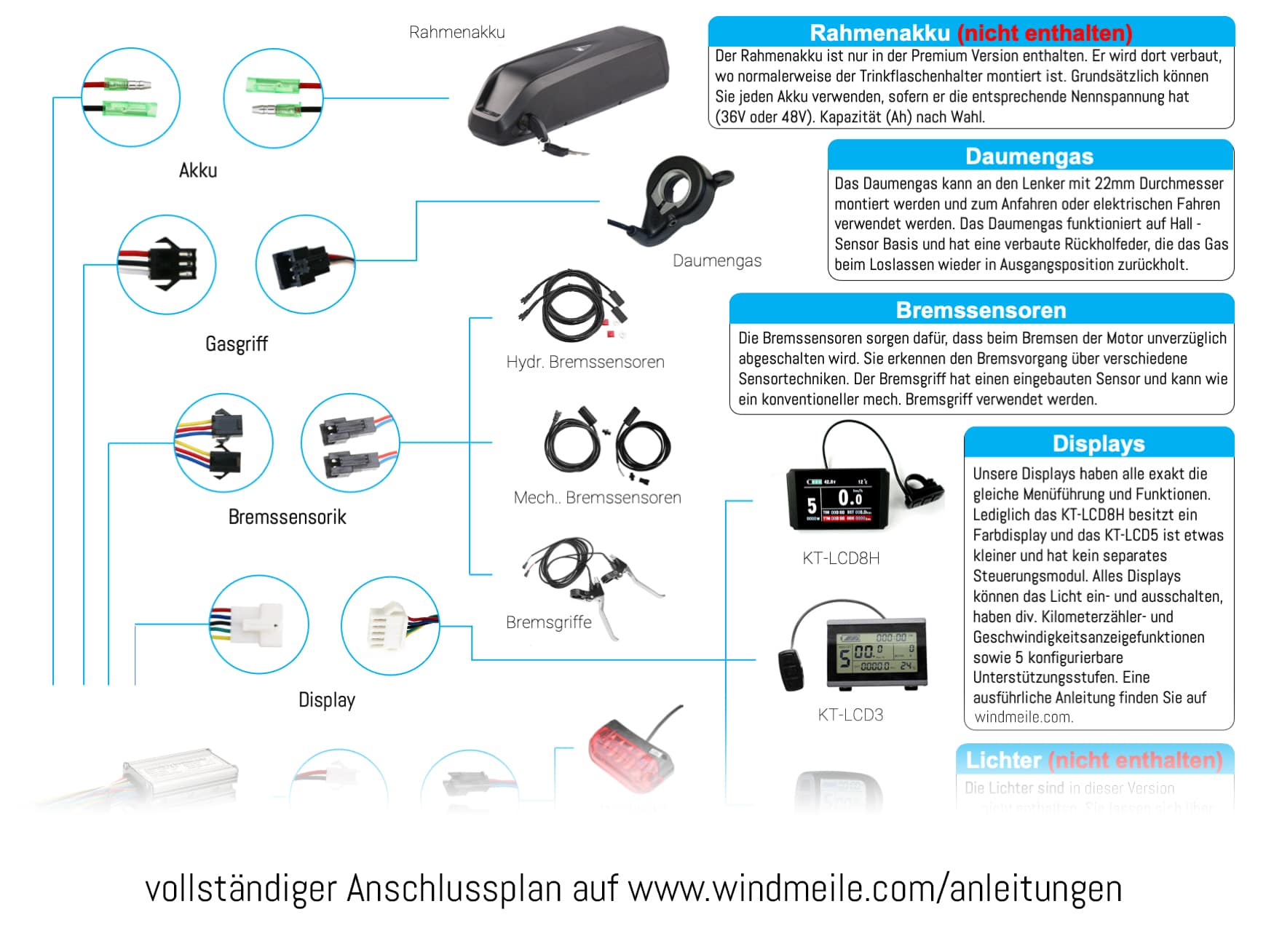 Kompatibel sind bei diesem Artikel nur die Front- und Rücklichter der Marke windmeile (mit Professional Steckersystem). Zudem ist der Controller nur zu KT-Displays kompatibel.