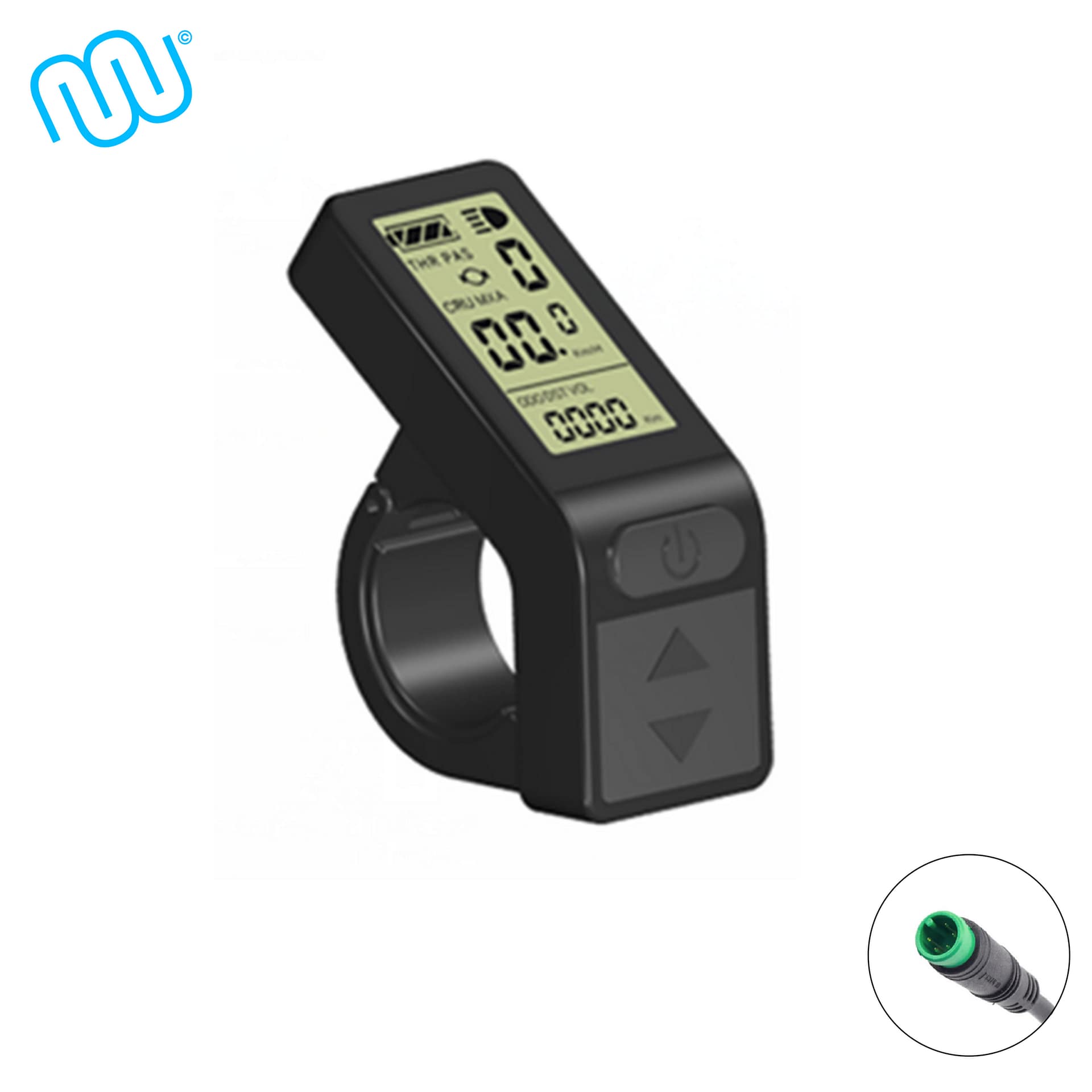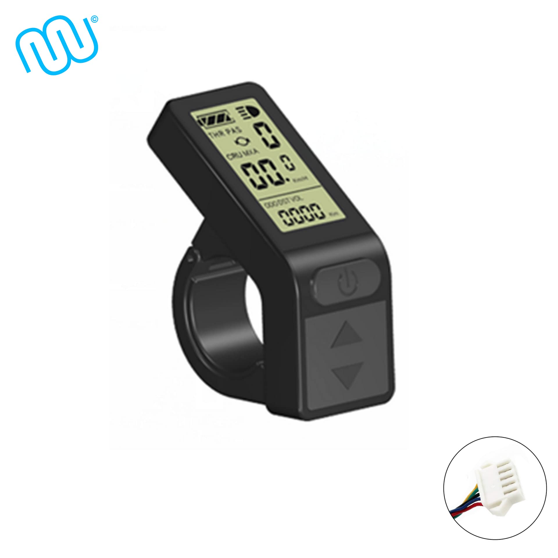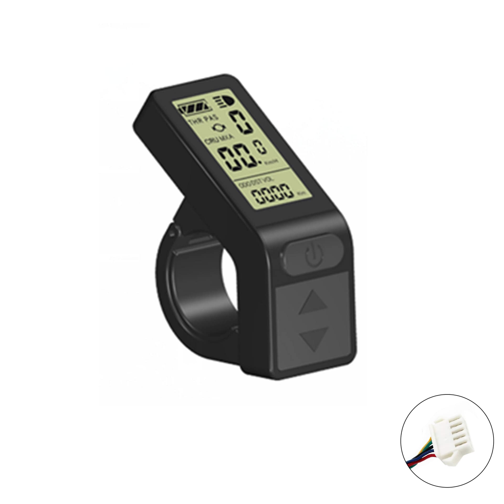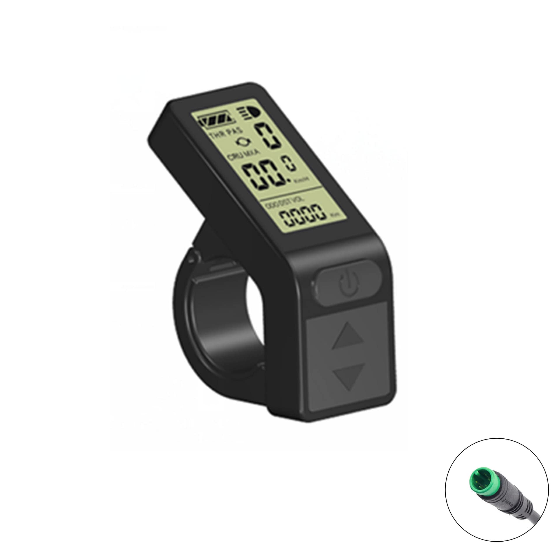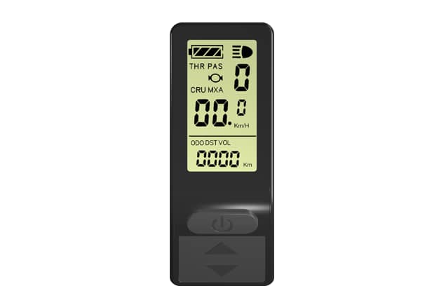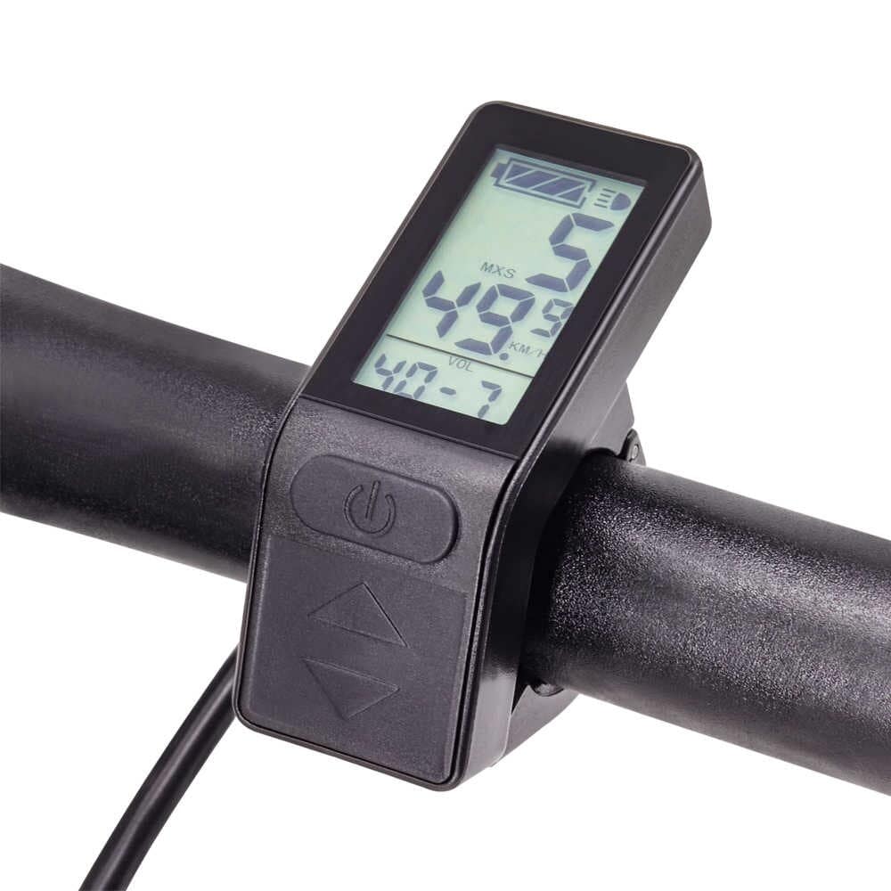 Das KT-LCD4 Display wird über den jeweiligen Stecker mit dem Controller verbunden. Der Bordcomputer bietet 5 einstellbare Unterstützungsstufen sowie eine Geschwindigkeitsanzeige (momentane, durchschnittliche und maximale Geschwindigkeit). Zudem können über das Bedienelement des Displays die Lichter Ihres E-Bikes gesteuert werden. Die Akkuladung wird Ihnen über 4 Balken angezeigt, aber auch eine genaue Anzeige der aktuellen Voltzahl ist möglich. Weitere Funktionen sind: Kilometerzähler, Fahrtdaueranzeige, Passwortschutz, Fehlercode-Anzeige, Auto Aus und Anfahrhilfe bis 6km/h. Der Lenkerdurchmesser beträgt 22,2mm.