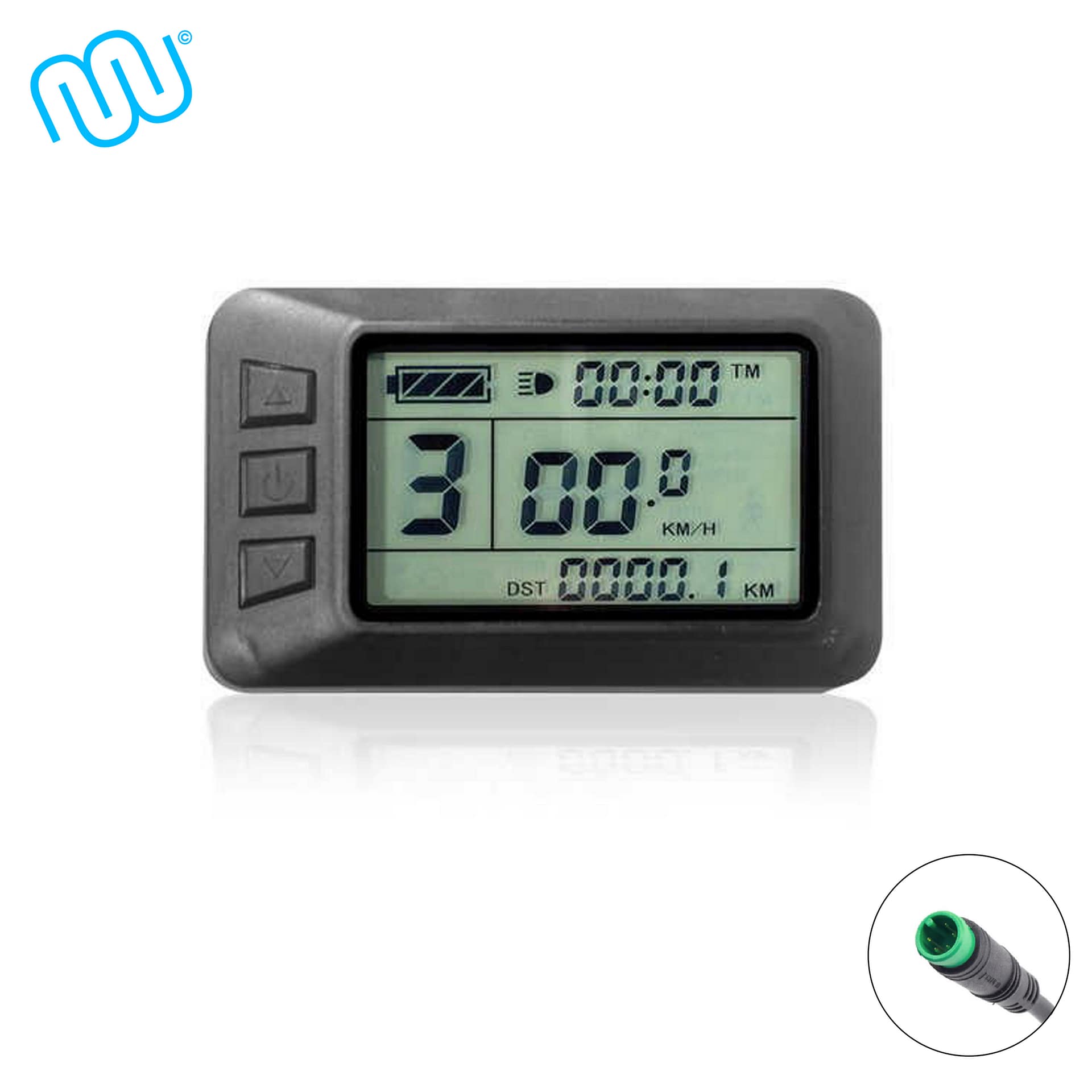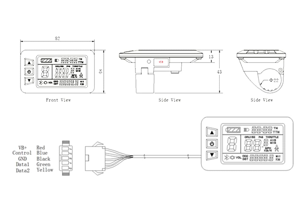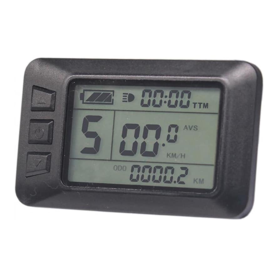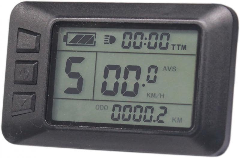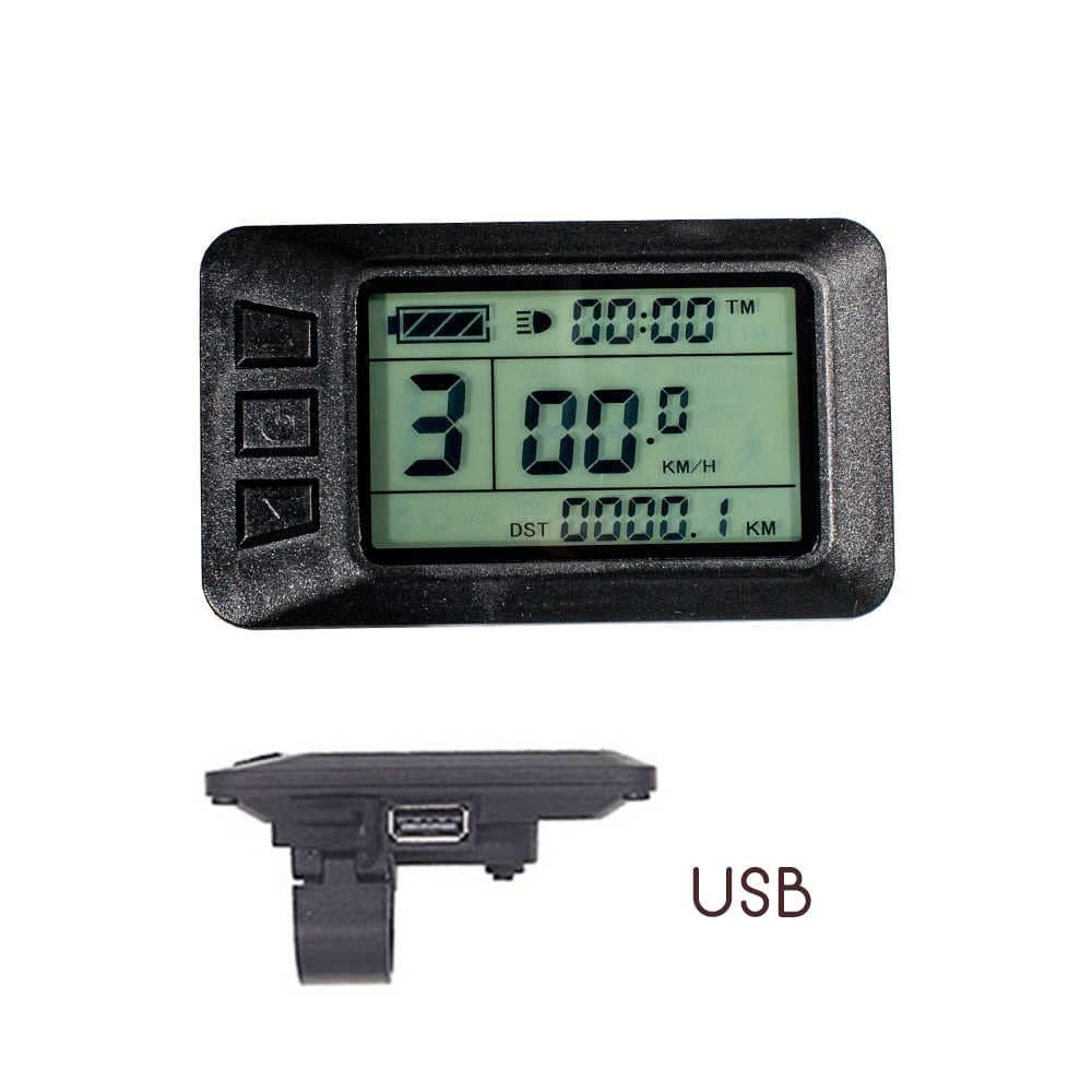Das KT-LCD7U Display wird über den jeweiligen Stecker mit dem Controller verbunden. Der Bordcomputer bietet 5 einstellbare Unterstützungsstufen sowie eine Geschwindigkeitsanzeige (momentane, durchschnittliche und maximale Geschwindigkeit). Zudem können über das Bedienelement des Displays die Lichter Ihres E-Bikes gesteuert werden. Die Akkuladung wird Ihnen über 4 Balken angezeigt, aber auch eine genaue Anzeige der aktuellen Voltzahl ist möglich. Weitere Funktionen sind: Kilometerzähler, Fahrtdaueranzeige, Passwortschutz, Fehlercode-Anzeige, Auto Aus und Anfahrhilfe bis 6km/h. Das Display verfügt außerdem über eine USB-Buchse (USB-A) zum Laden des Handys (5V 1A Output). Der Lenkerdurchmesser beträgt 22,2mm.