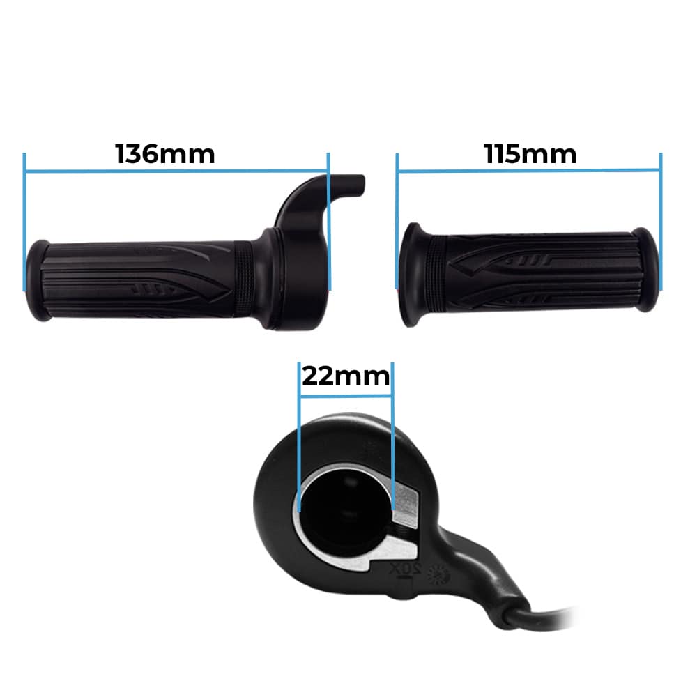 Der Gasgriff werden über den jeweiligen Stecker mit dem Kabelbaum verbunden und rechts am Lenker montiert. Die Motorleistung und Geschwindigkeit können direkt am Lenker über die Gasgriffe präzise genau gesteuert werden. Der Gasgriff ermöglicht eine Anfahrhilfe bis 6km/h, kann aber auch ohne Tretkraft bis zur Höchstgeschwindigkeit fahren. Für die genaue Konfiguration benötigen Sie das Bafang Programmierkabel.