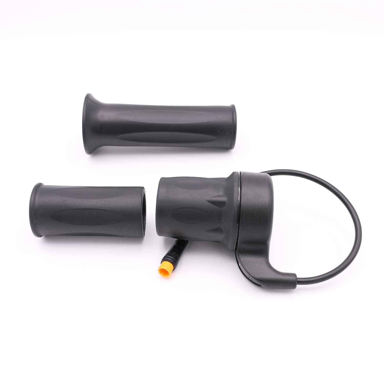 Die Gasgriffe werden über den jeweiligen Stecker mit dem Controller verbunden und rechts am Lenker montiert. Die Motorleistung und Geschwindigkeit können direkt am Lenker über die Gasgriffe präzise genau gesteuert werden. Der Gasgriff ermöglicht eine Anfahrhilfe bis 6km/h, kann aber auch ohne Tretkraft bis zur Höchstgeschwindigkeit fahren.