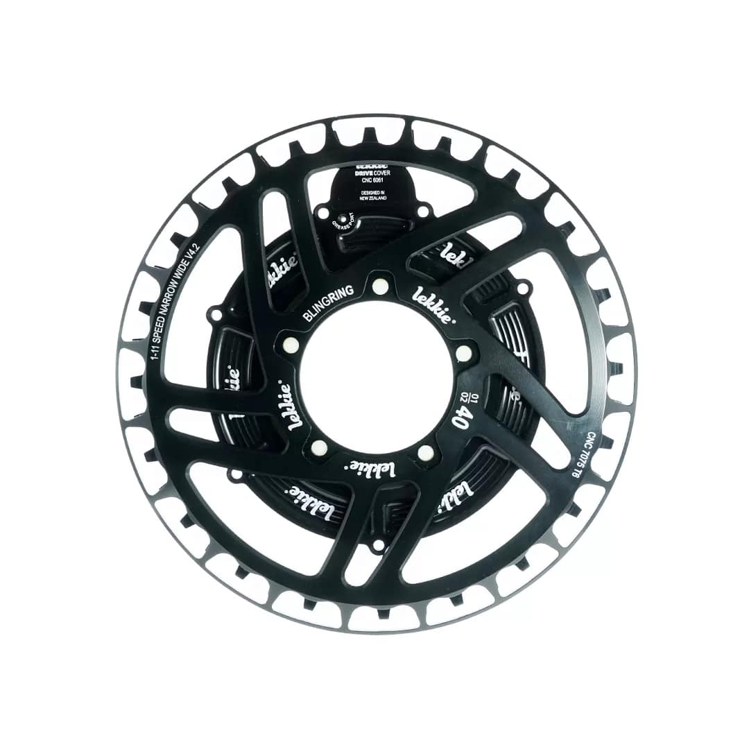 Das Lekkie Bling Ring 40T Kettenrad mit 40 Zähnen, dem Bling Ring Spacer und dem Drive Cover ist nun das kleinste Kettenblatt, welches den richtigen Versatz und die Kettenlinie beibehält. Das Bling Ring Kettenblatt 40T hat 2mm mehr Versatz als das 42T Kettenblatt. Den Bling Ring Spacer können Sie zusätzlich verwenden, wenn Sie den Standardversatz von 9mm benötigen. Der Offset lässt sich variieren. Das ca. 150 Gramm schwere Kettenblatt ist aus einem Block Aluminium gefräst. Durch die wärmebehandelte Legierung 7075 wird das Gewicht, bei gleichzeitiger Beibehaltung der Zahnhärte, reduziert. Ausgelegt ist das Kettenblatt für 7, 8, 9, 10, 11-fach Ketten bei den meisten Herstellern, bei dem SRAM Eagle empfiehlt sich hier eine 12-fach Kette. Es passt jedoch nicht zum Shimano 12-speed KMC X101 und KMC Z1eHX. Kompatibel ist das Kettenblatt lediglich zum Bafang BBS01 und BBS02 Motor.