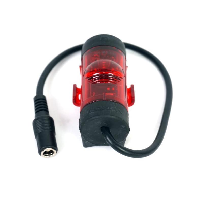 Das Roxim Rear R1 E-Light ist ein hochwertiges Rücklicht für E-Bikes. Es bietet mit 280° Sichtweite eine helle und zuverlässige Beleuchtung für die hintere Sichtbarkeit und Sicherheit des Fahrers. Das Rücklicht verfügt über eine leistungsstarke Red Cree XBD Lichtquelle und ist mit einem wasserdichten Aluminiumgehäuse ausgestattet, das für den Einsatz unter verschiedenen Wetterbedingungen geeignet ist. Das Roxim Rear R1 E-Light ist dank konkaver Rückseite einfach zu an der Sattelstüzte zu installieren, oder dank den mitgelieferten Gummibändern am Gepäckträger anbringbar. Das Rücklicht kann dank DC-Hohlstecker direkt an andere Grin Produkte, wie den Cycle Analysten, angeschlossen werden. Aufgrund des großen Spannungsbereiches kann es per Adapter auch direkt an viele Akkus angeschlossen werden.
