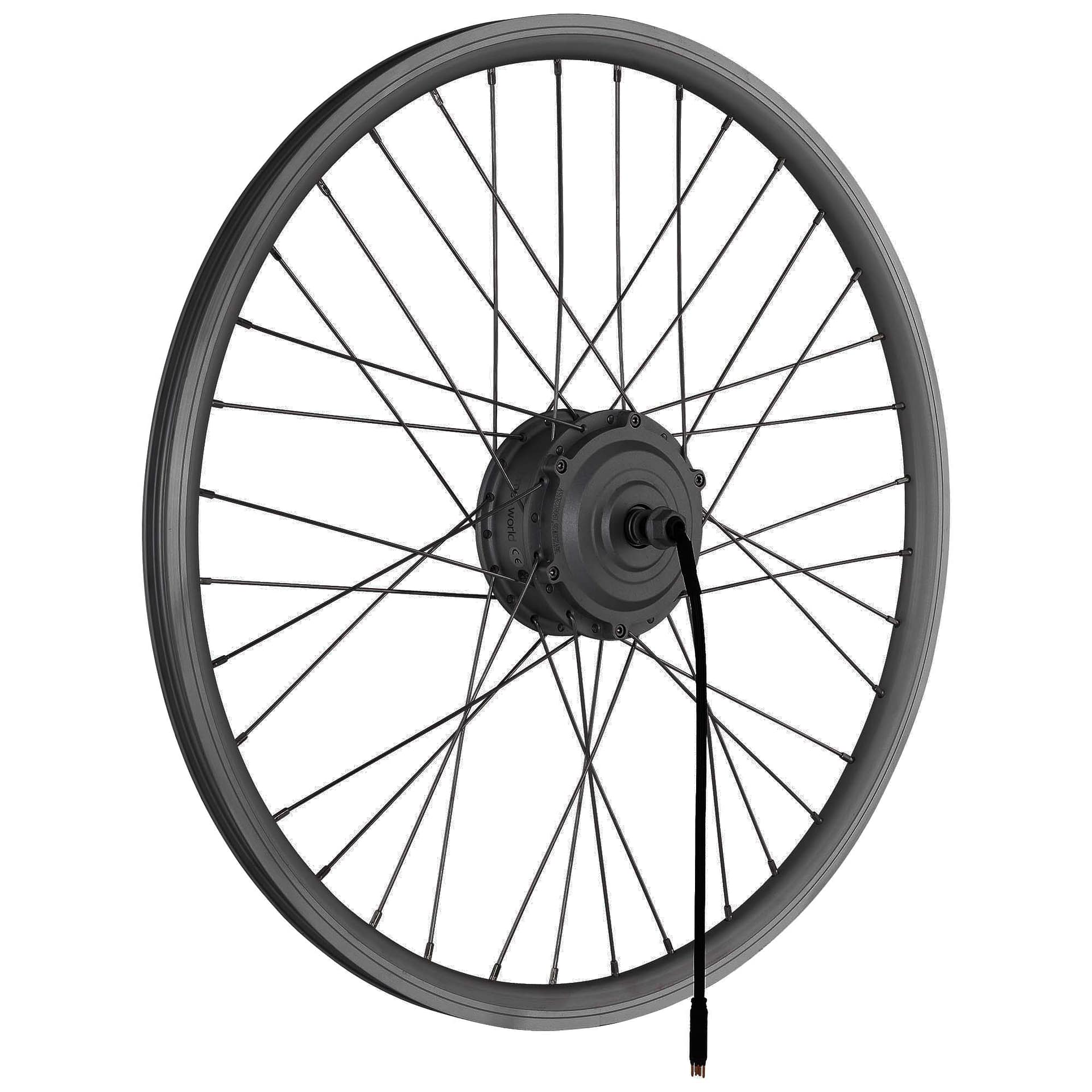 Gegen Transportschäden gesicherter, eingespeichter E-Bike Nabenmotor der Marke windmeile (in gewählter Konfiguration)