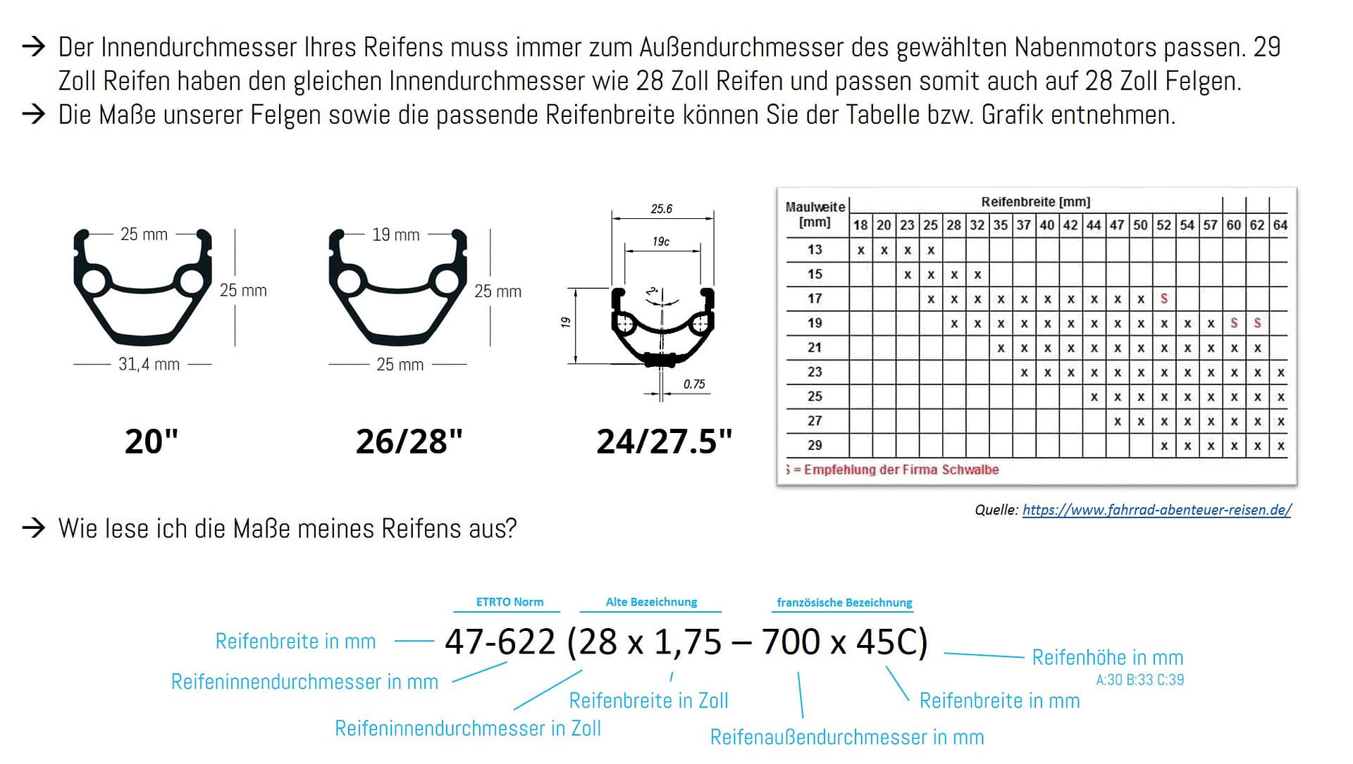 Felgenmaße und Bereifung