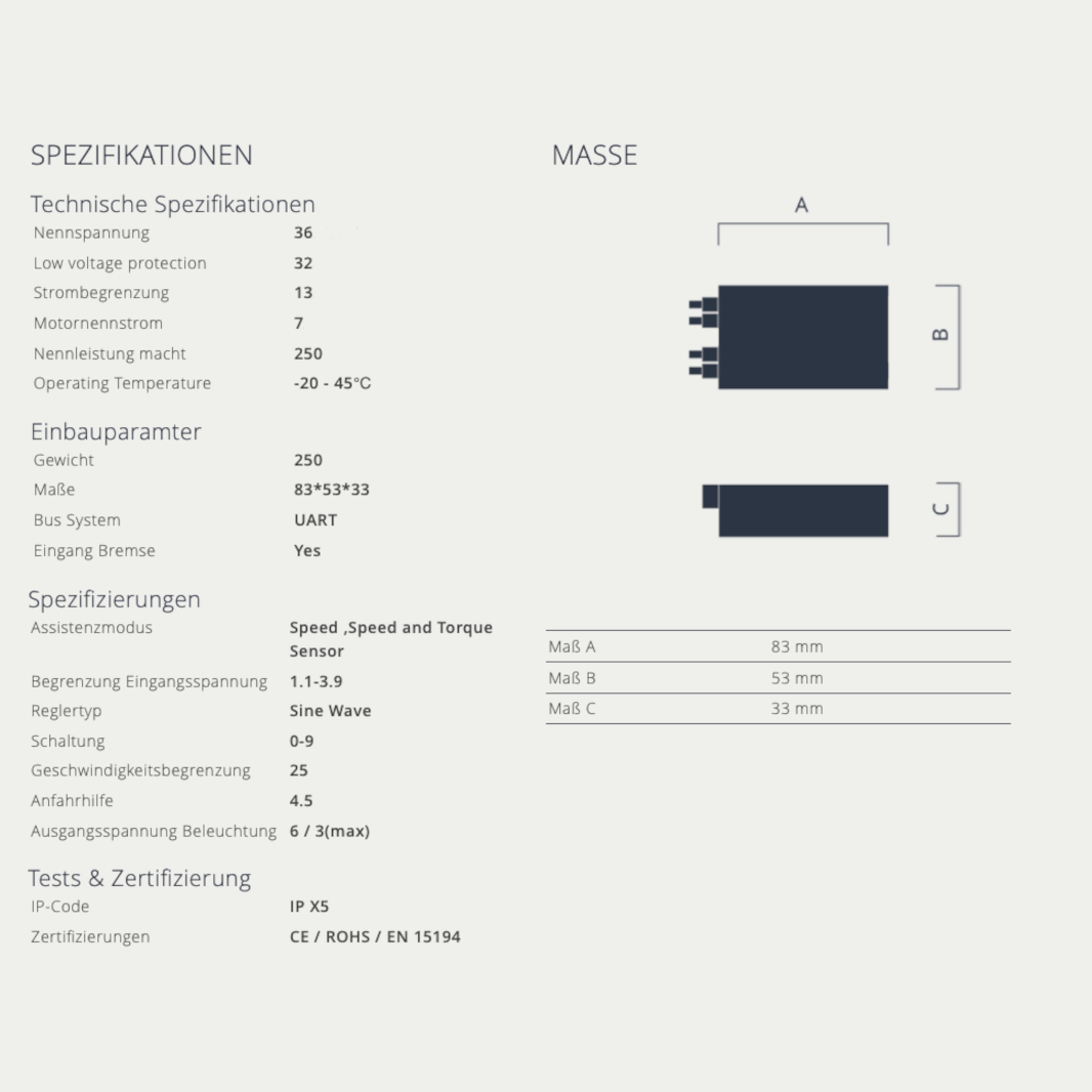 | Produktlinie | Bafang – CAN-Bus, Bafang – UART, windmeile – Professional, windmeile – Waterproof |