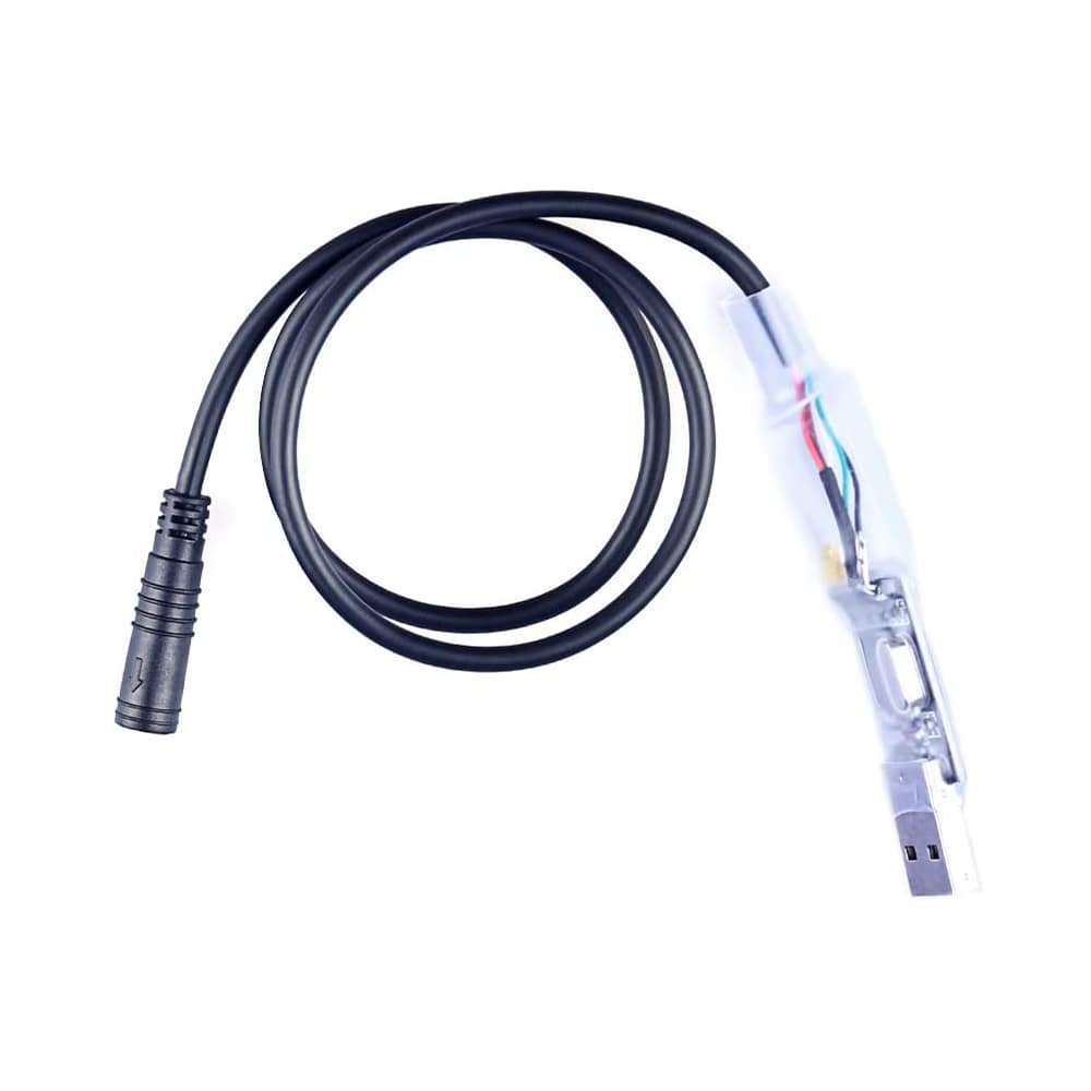 Das Programmierkabel wird am Display-Anschluss angeschlossen und dann per USB mit dem Computer verbunden. Achtung: Eine Umprogrammierung Ihres Bafang Motorcontrollers führt zwangsläufig zum Verfall der Garantie und Gewährleistung, da Sie erhebliche Änderungen an der Funktionsweise vornehmen.