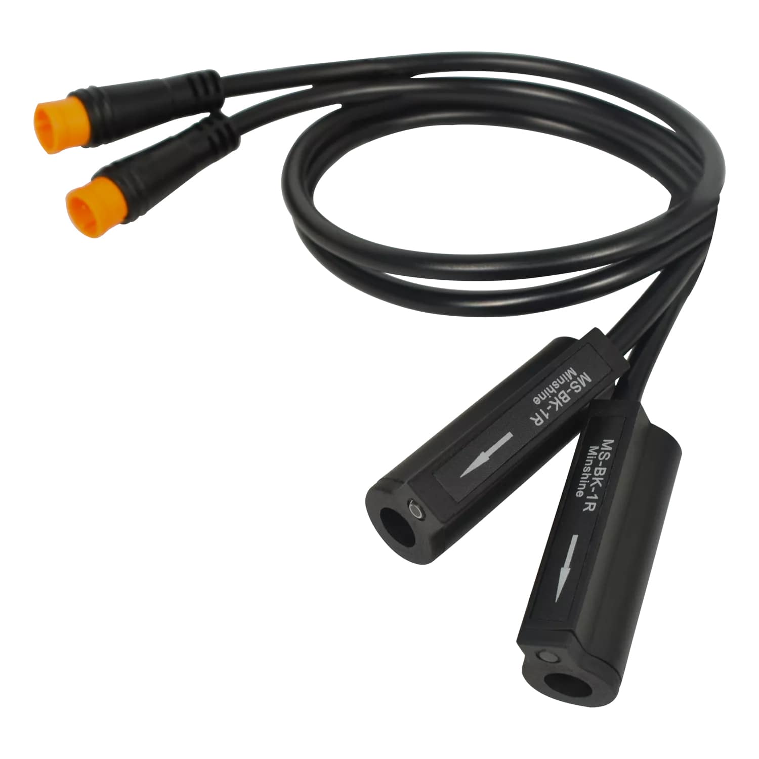 Verbindet ein mechanisches V-Brake System mit dem Bafang BBS-System oder dem Bafang Controller und lässt den Motor die Bremsaktivität erkennen, wenn der Bremsdraht gezogen wird. Die normalen Funktionen Ihres Bremssystems werden in keiner Weise beeinträchtigt. Installieren Sie jeweils einen Bremssensor für die Vorderradbremse, und einen für die Hinterradbremse.