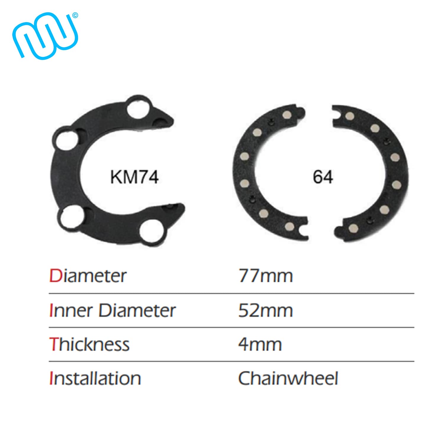 | D12 | 12 | Kettenblatt | 24, 26 Zähne, Maße prüfen! | Magnetisch o. verschraubt (4x) | erforderlich | Für 4-Arm Tretkurbel |