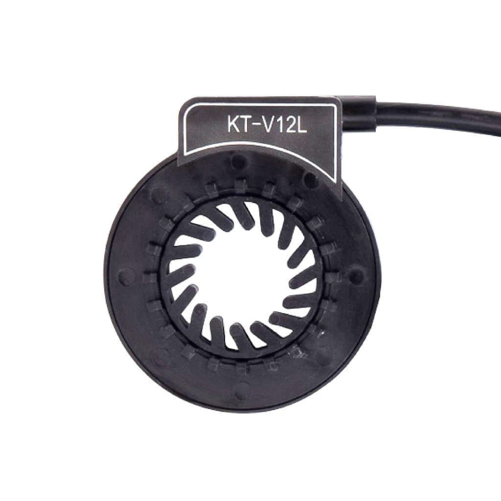 Der PAS KT-V12L Pedalsensor wird über den jeweiligen Stecker mit dem Controller verbunden. Der PAS (Pedal-Assist-Sensor) ist ein Sensor, der bemerkt, wenn Sie pedalieren. Der Bordcomputer erhält dieses Signal und aktiviert den Elektroantrieb. Der Sensor ist klein, unauffällig und stabil. Kein Ausbau des Tretlagers erforderlich.