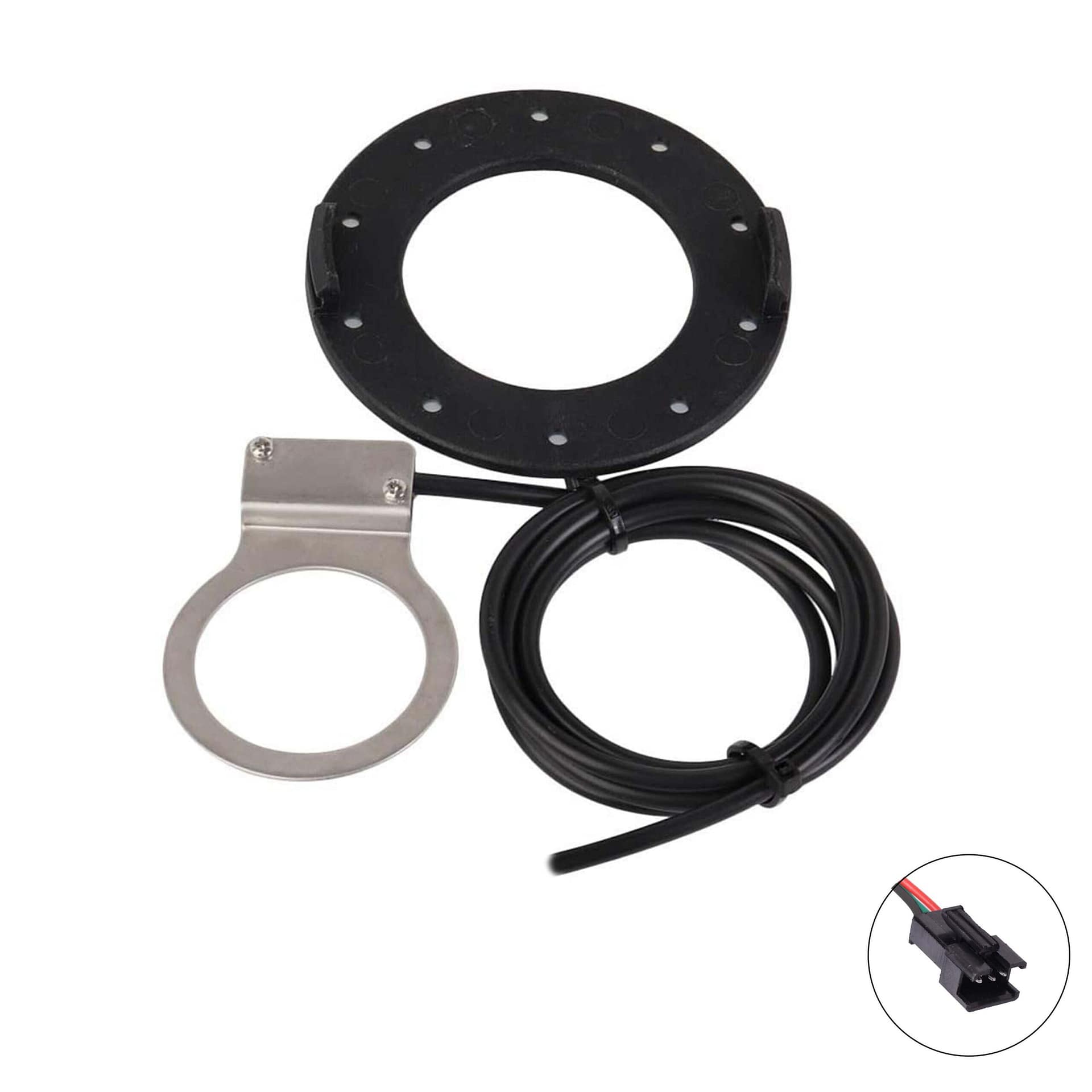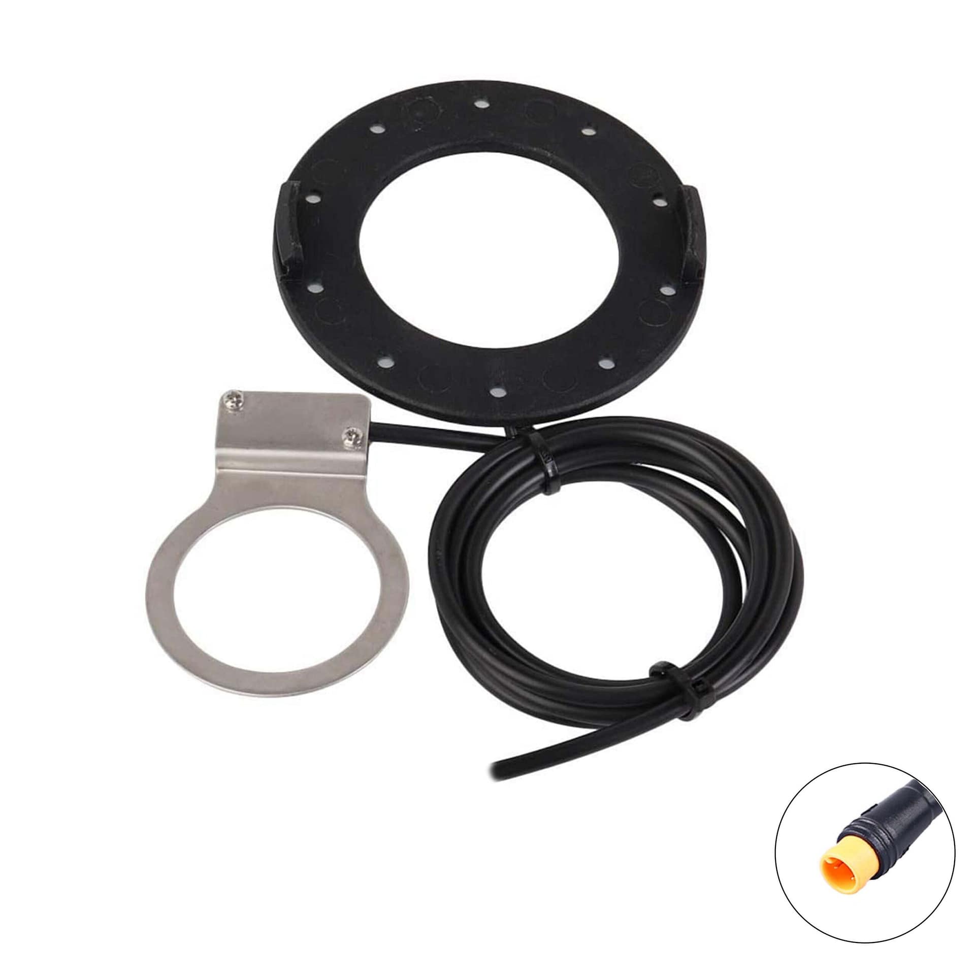 Der PAS BZ-10C Pedalsensor wird über den jeweiligen Stecker mit dem Controller verbunden. PAS (Pedal-Assist-Sensor) ist ein Sensor, der bemerkt, wenn Sie pedalieren. Der Bordcomputer erhält dieses Signal und aktiviert den Elektroantrieb. Der Sensor ist klein, unauffällig und stabil und wird direkt an den Kettenblättern montiert.