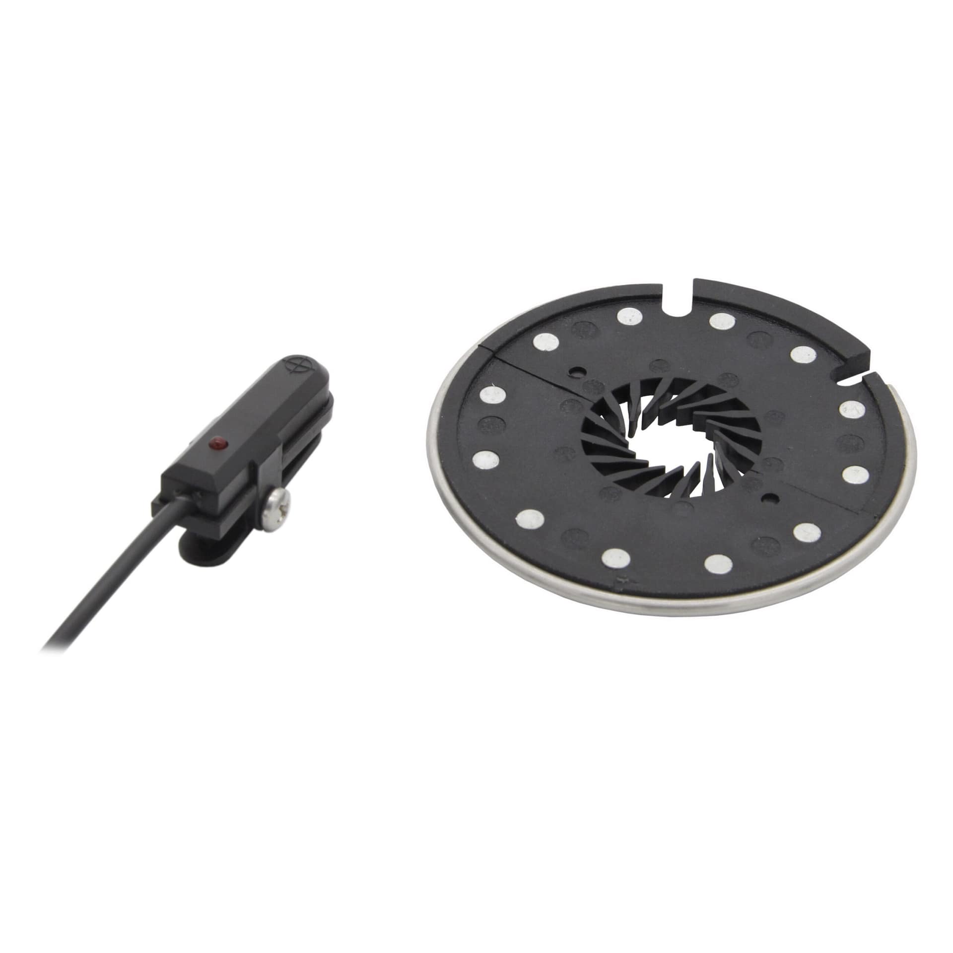 Der PAS KT-D12 Pedalsensor wird über den jeweiligen Stecker mit dem Controller verbunden. Der PAS (Pedal-Assist-Sensor) ist ein Sensor, der bemerkt, wenn Sie pedalieren. Der Bordcomputer erhält dieses Signal und aktiviert den Elektroantrieb. Der Sensor ist klein, unauffällig und stabil. Kein Ausbau des Tretlagers erforderlich.