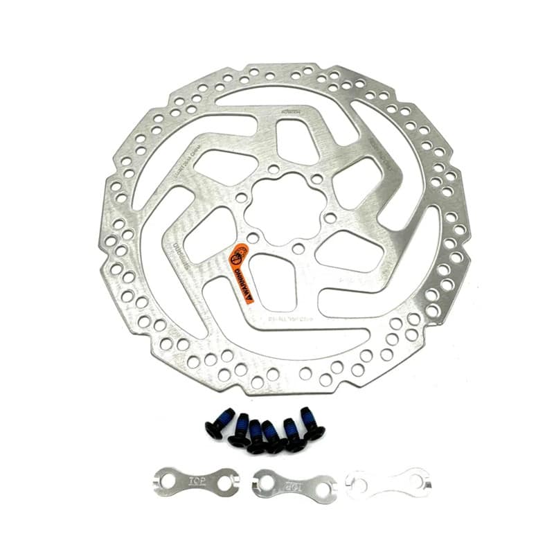 Die Shimano Bremsscheibe SM-RT26 mit 180mm Durchmesser wird an der Nabe des Rads befestigt (6-Loch Bremscheibenaufnahme). Wenn Sie dann Ihre Scheibenbremse betätigen, wird der Bremsbelag gegen die Bremsscheibe gedrückt und verringert somit die Geschwindigkeit.