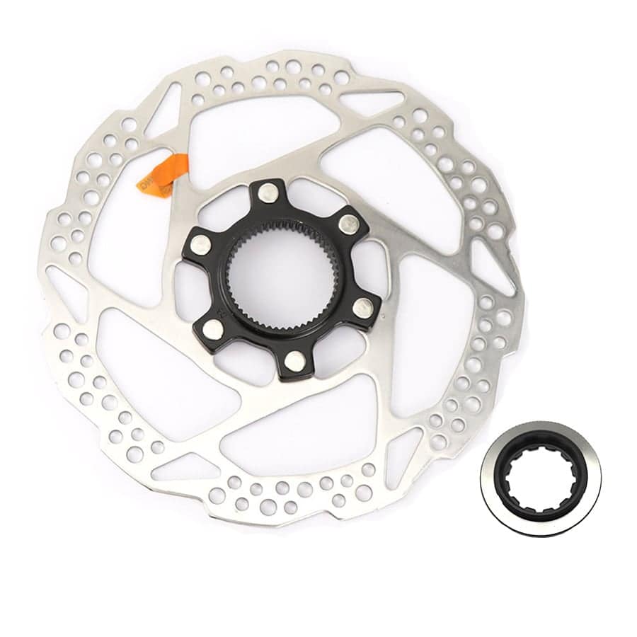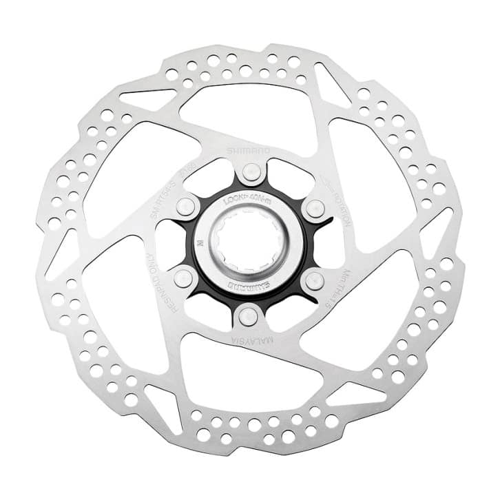 Die Shimano Bremsscheibe SM-RT54S mit 160mm Durchmesser wird an der Nabe des Rads befestigt (Center Lock). Wenn Sie dann Ihre Scheibenbremse betätigen, wird der Bremsbelag gegen die Bremsscheibe gedrückt und verringert somit die Geschwindigkeit. Der Verschlussring besitzt eine Innenverzahnung.
