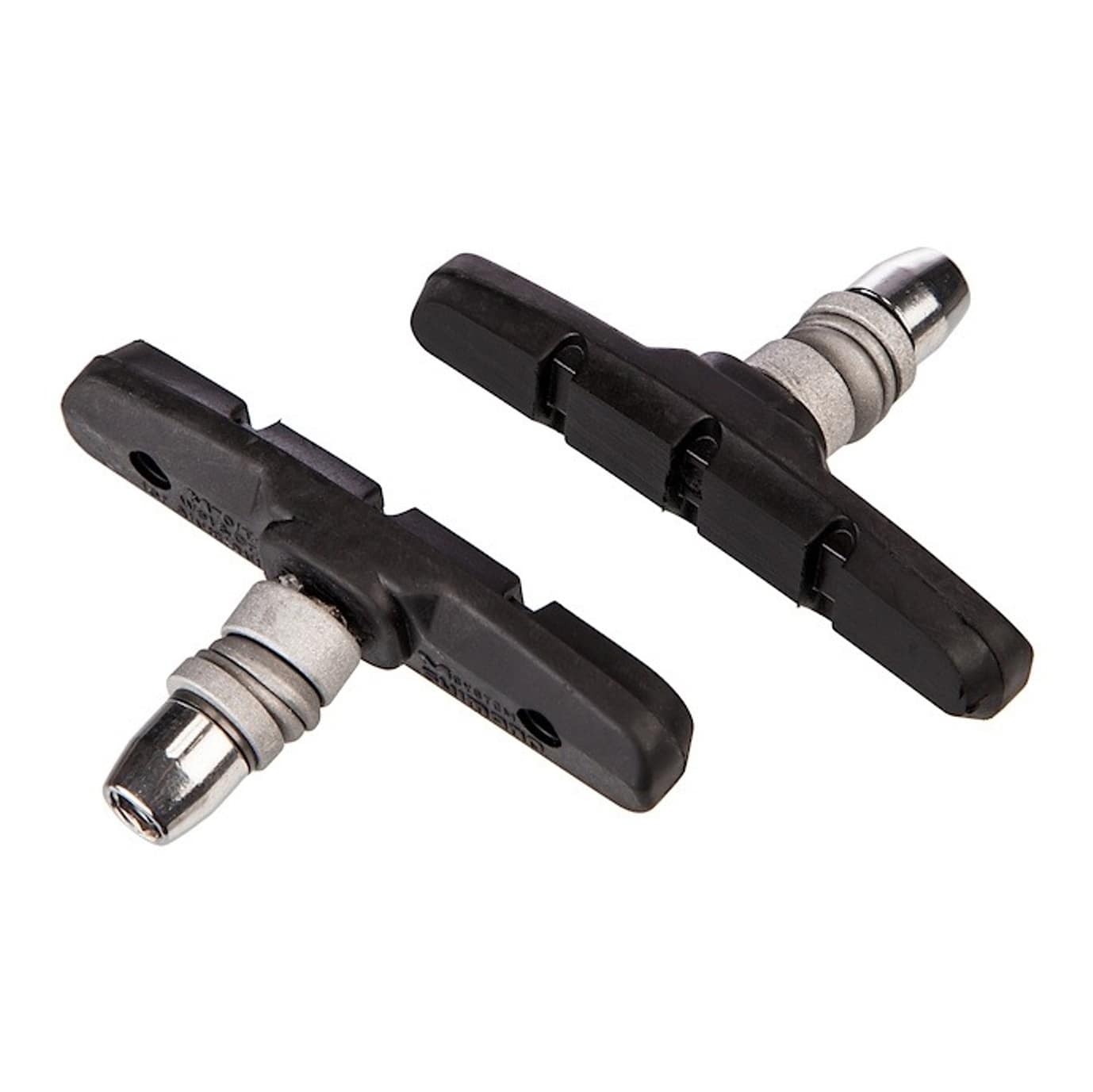 Die Shimano Bremsschuhe M70T4 sind V-Brake-Bremsschuhe die dank des speziell abgestimmten Bremsbelags besonders für Nässe geeignet sind. Auch sonst bieten Sie ein besonders hohes Bremskraftniveau bei einer geräuscharmen Funktionsweise und geringem Felgenverschleiß. Der Bremsschuh und Bremsbelag werden fixiert geliefert, Sie müssen als nur die Bremsarme Ihres Fahrrads auf beiden Seiten an den Schaft der Bremsschuhe montieren.