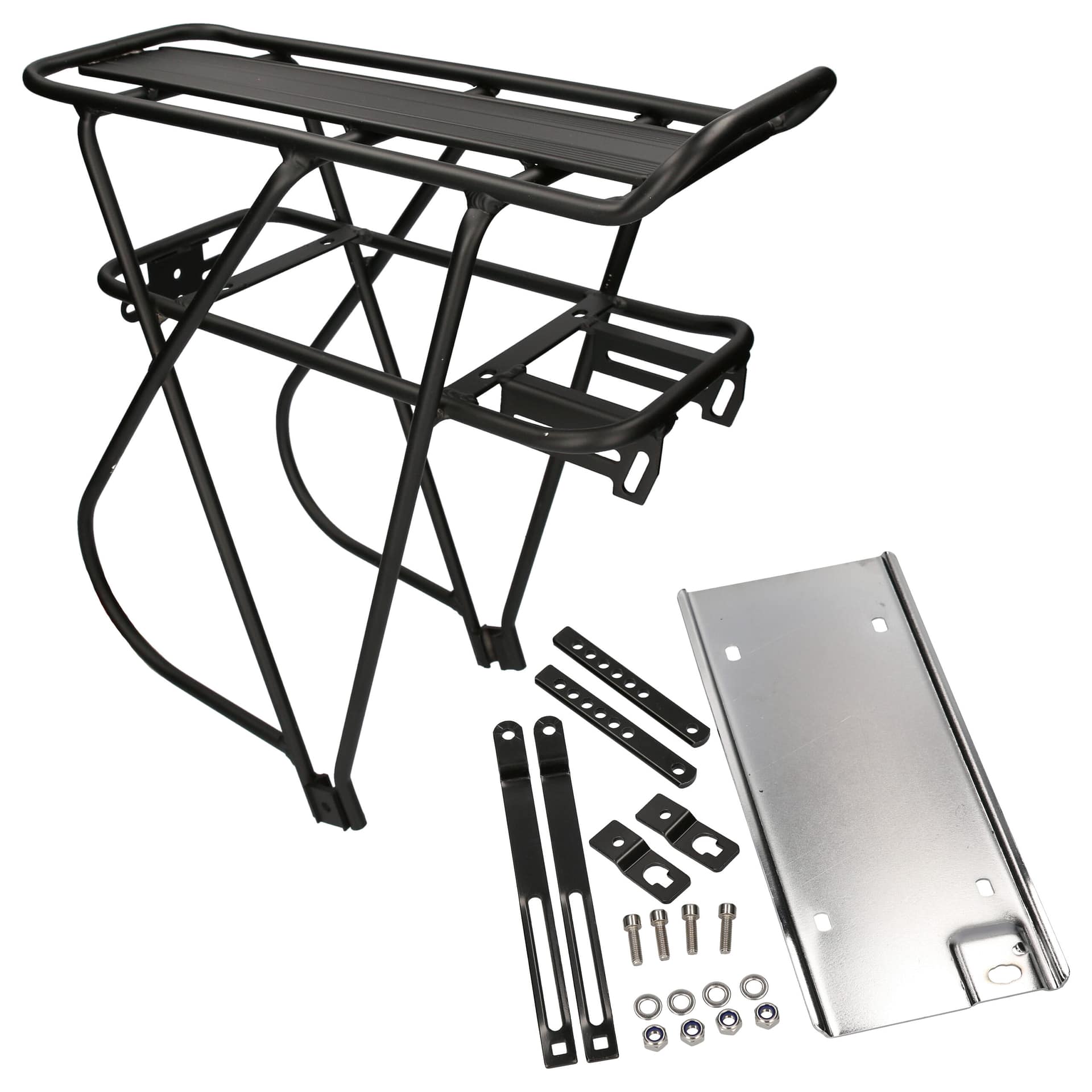 Dieser Gepäckträger ist eine praktische Erweiterung für Ihr E-Bike, da er von Grund auf für Gepäckträger-Akkus konzipiert wurde. Zudem bietet er die üblichen Funktionen eines Gepäckträgers: Egal ob es Ihre Einkaufstüte, Handtasche, Rucksack oder jeder andere beliebige Gegenstand ist, mit diesem Gepäckträger transportieren Sie alles ganz bequem mit Ihrem Fahrrad. Der Befestigungspunkte des Gepäckträgers sind anpassbar und somit für die meisten Fahrräder geeignet. Achtung: Der Gepäckträger ist nicht für den Transport von Menschen ausgelegt!