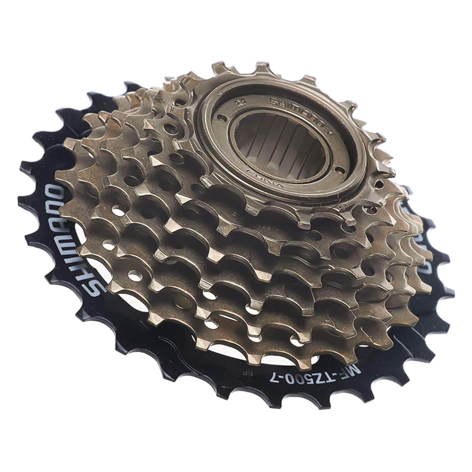 Der Shimano Schraubkranz MF-TZ500 ist mit seinem Gewicht besonders leicht und gewährleistet eine einfache Montage ohne Werkzeug. Der Schraubkranz montiert sich von selbst während dem Pedalieren und schraubt sich eigenständig auf die Nabe. Der Durchmesser beträgt ca. 4mm x Zähnezahl. Die Abstufung der Ritzel ist 14-16-18-21-24-28 für die 6-Fach Variante und 14-16-18-20-22-24-28 für den 7-Fach Schraubkranz.
