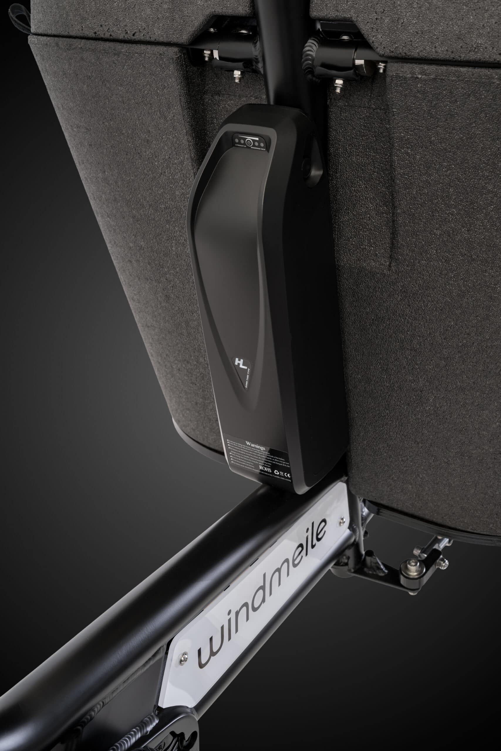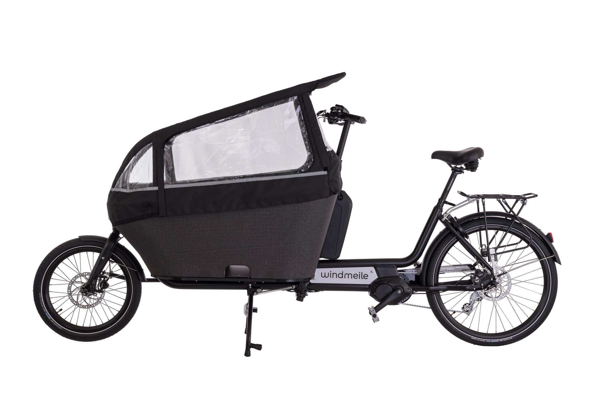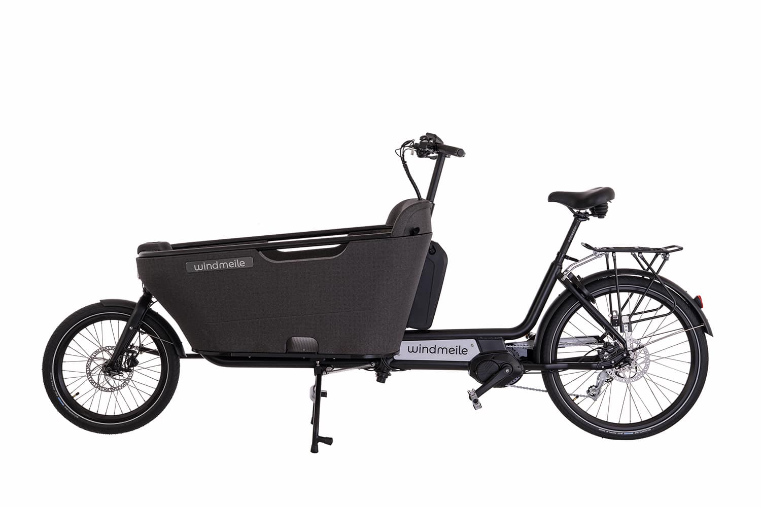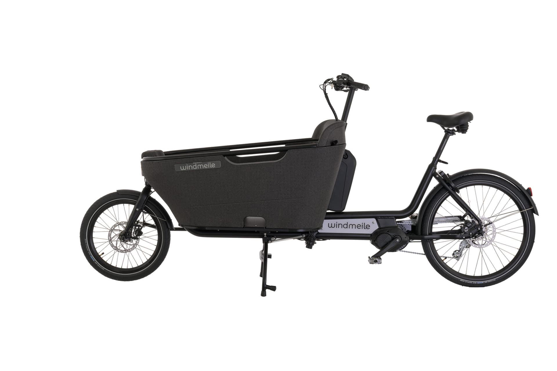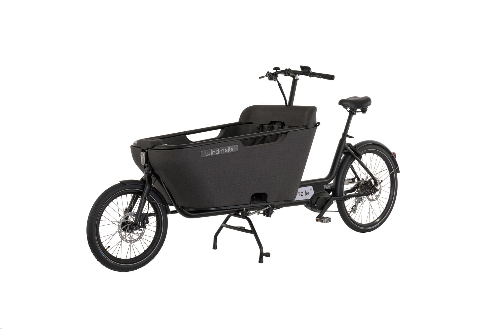 windmeile | E-Lastenrad einspurig, geräumiges Cargobike mit Sitzbank in Schwarz