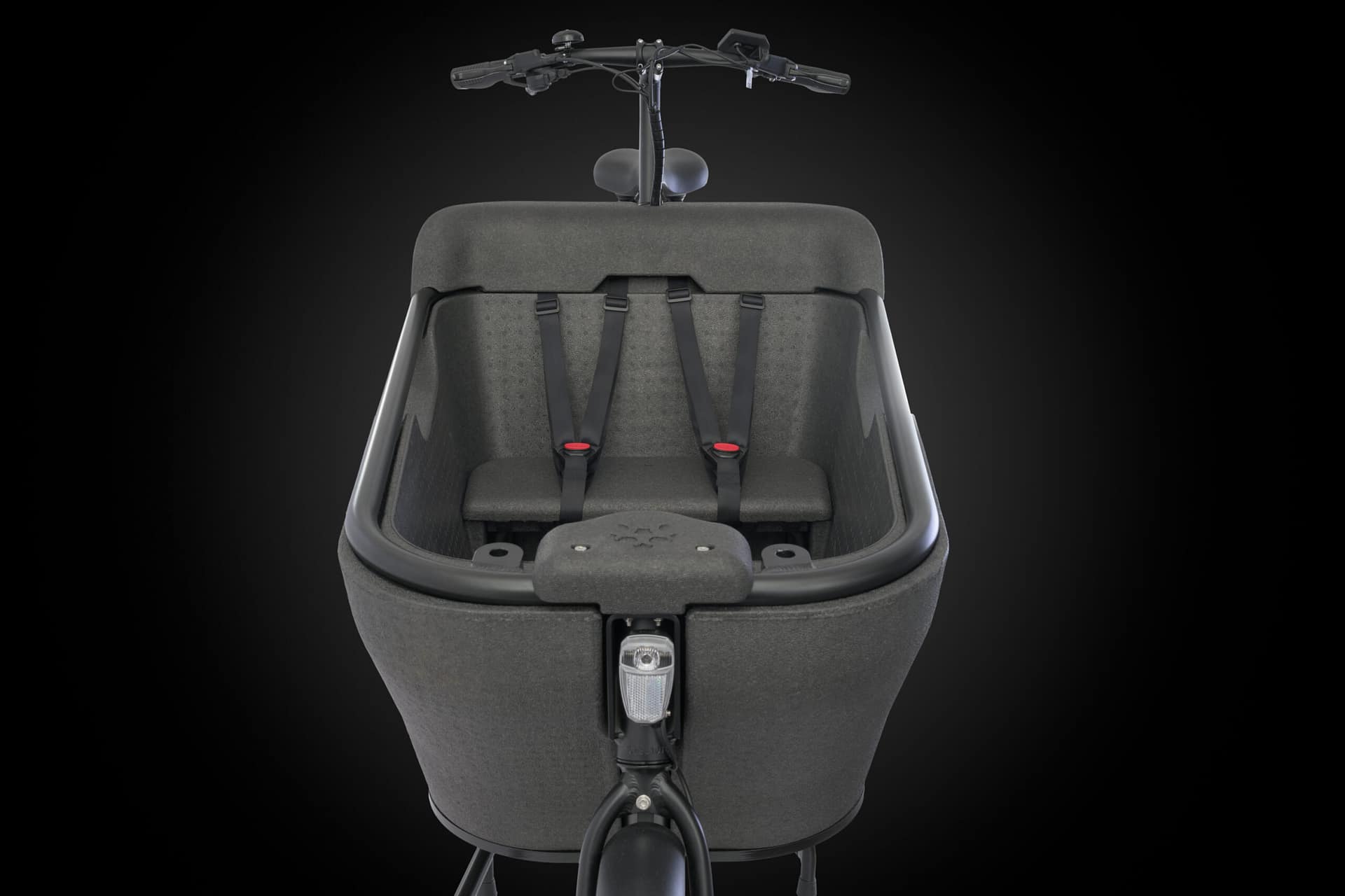 Das einspurige E-Lastenrad von windmeile ist die ideale Lösung für Familien und umweltbewusste Stadtbewohner, die Wert auf Flexibilität und Komfort legen. Mit seiner großzügigen Cargobox aus widerstandsfähigem EPP-Material bietet es Platz für zwei Kinder bis zu 8 Jahren, einen zusätzlichen Maxicosi oder sogar Ihren Hund. Die Sitzbank ist mit zwei einstellbaren Sicherheitsgurten mit Klicksystem ausgestattet, um maximale Sicherheit zu gewährleisten.