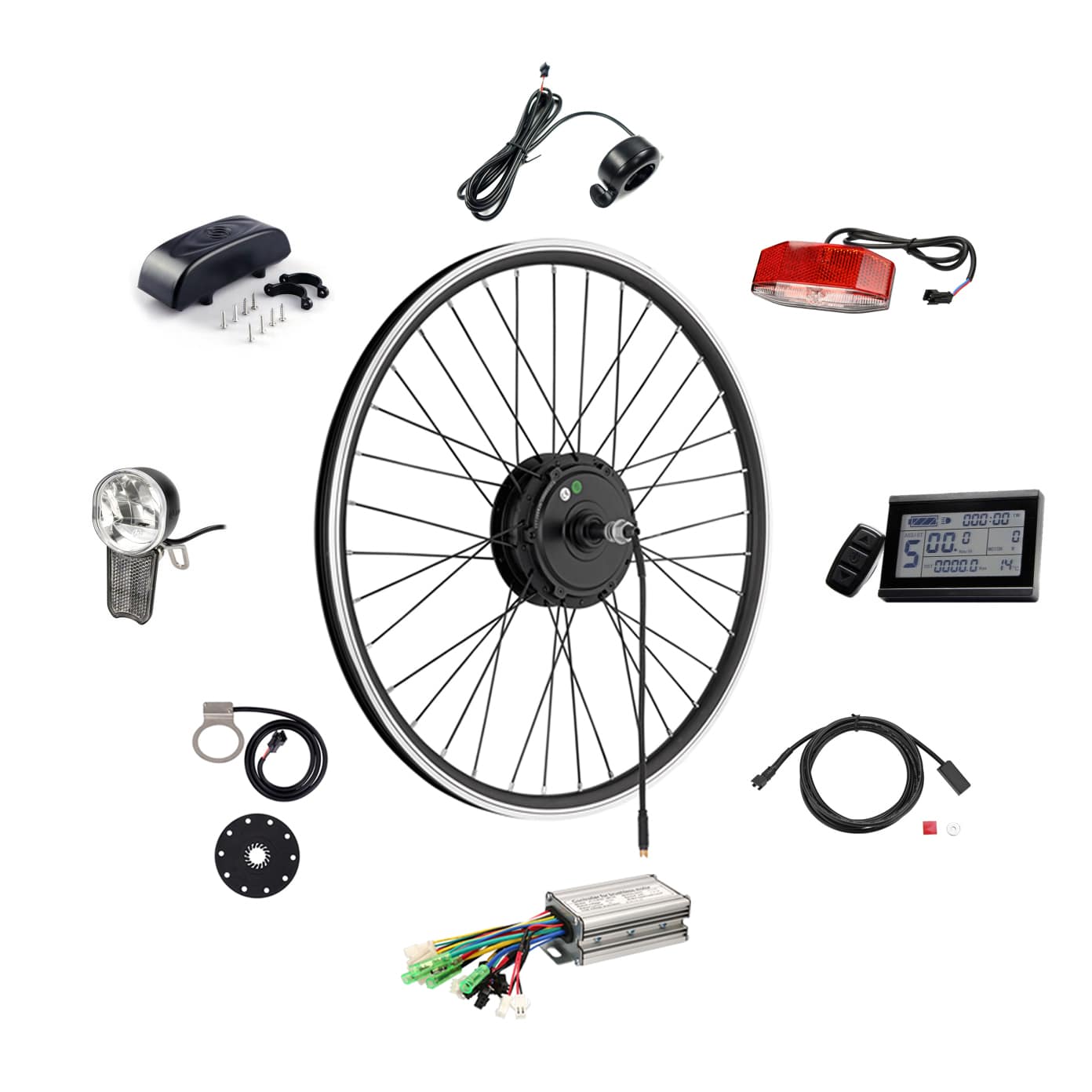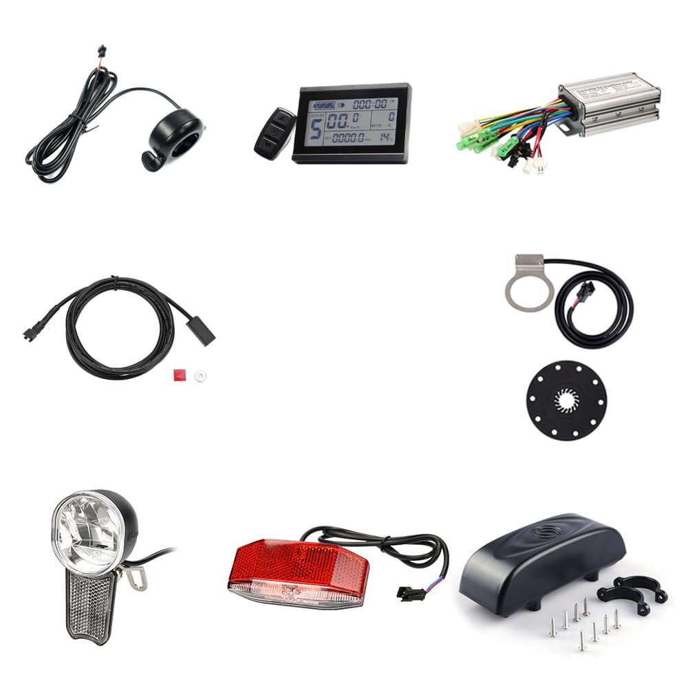 windmeile | E-Bike Umbausatz, Nabenmotor Hinterrad, Schwarz, Professional, 20“/26“/28“, 36V/48V, 250W/500W, Controller, Daumengas, Display, Lichter, Bremssensor, Pedalsensor, Controller-Box, E-Bike, Pedelec