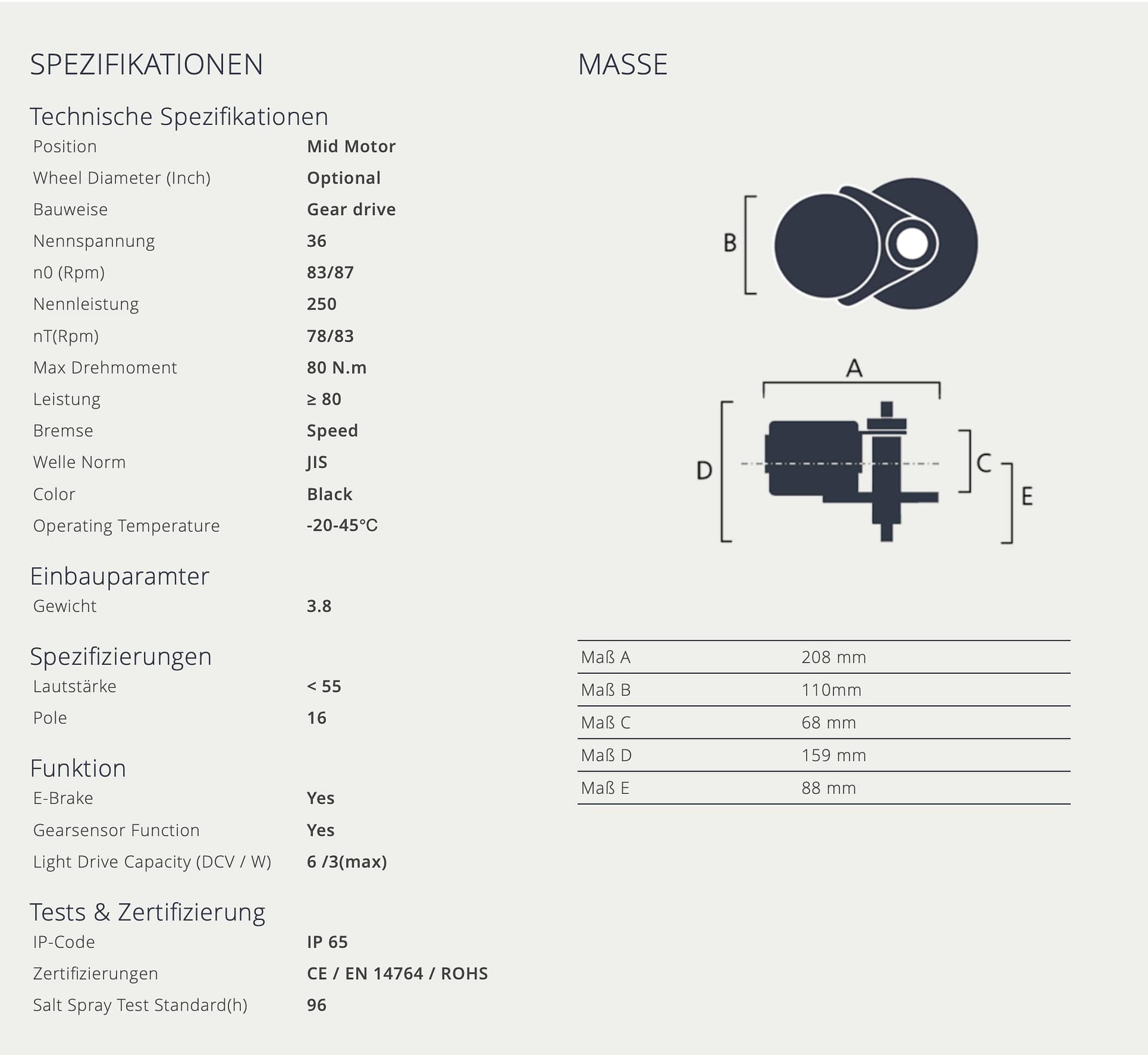 | Bremssensorik | 2x Bremsgriffe, 2x univ. Bremssensoren, keine Bremssensorik |