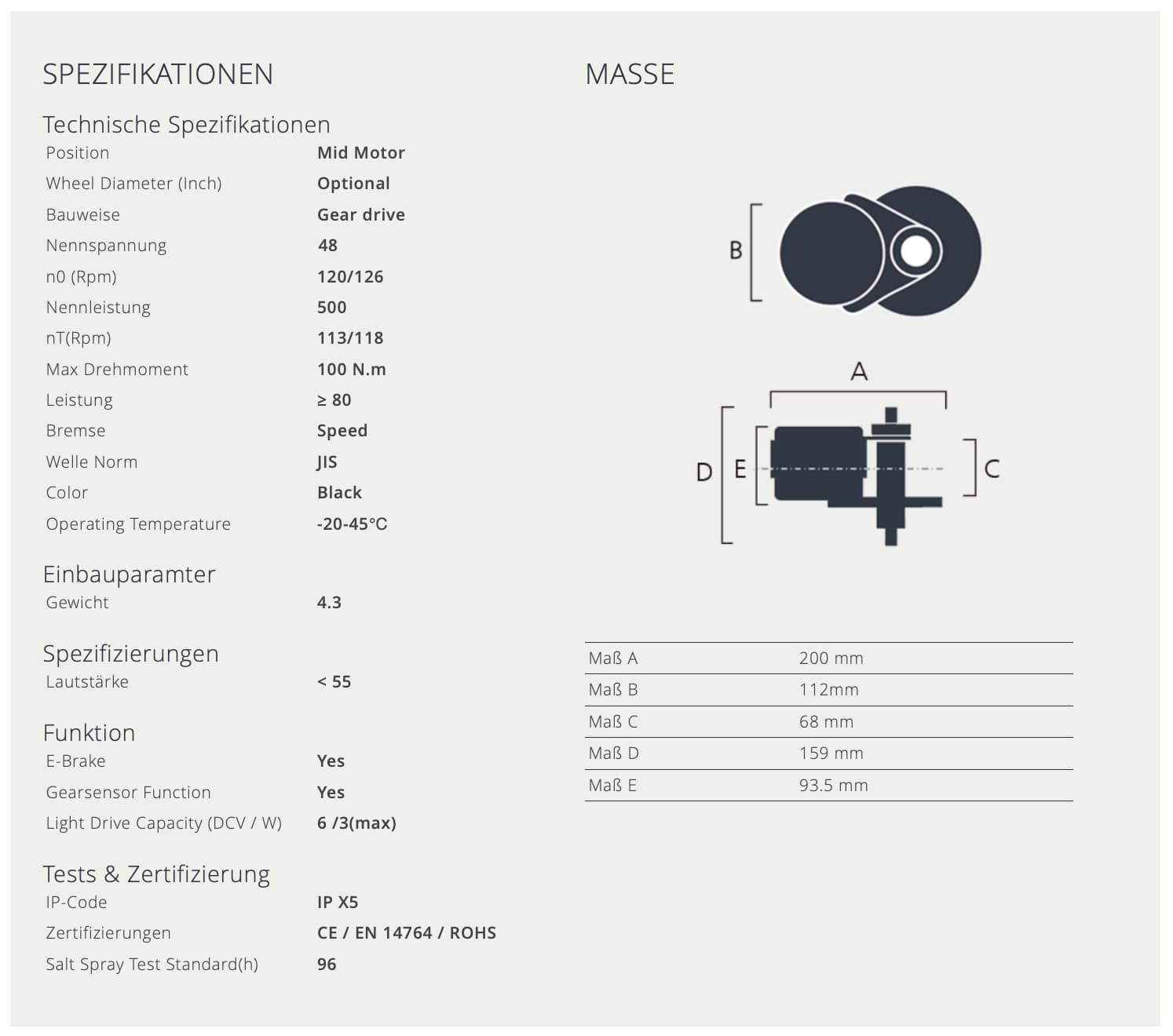 Der programmierbare Bafang BBS02 48V 500W Mittelmotor Umbausatz mit integriertem 25A Steuergerät gehört zu den effizientesten Antriebsarten im E-Bike Segment. Er sitzt direkt an der Tretkurbel und unterstützt den Fahrer über das verbaute Getriebe beim Pedalieren. Der Mittelmotor ist 112mm lang, 200mm hoch und 159mm breit und lässt sich somit angenehm einbauen. Die Getriebeübersetzung sorgt dafür, dass der Motor bei Bergfahrten eine enorme Zugkraft aufweist und im normalen Fahrbetrieb in seinem effizientesten Drehzahlbereich operiert. Der 6V Lichtausgang (bis zu 500mAh) ist über das Display steuerbar und das Steuergerät besitzt einen zusätzlichen Schaltsensoranschluss. Der Mittelmotor verfügt auch über breitere Wicklungen und Magnete als die <500W Varianten und eignet sich daher ideal für Bergfahrten. Mit einem optimalen Kadenzbereich von ca. 80-90 ist er jedoch vor allem für Schnellfahrer und Trekkingräder zu empfehlen. Wer schneller weite Strecken zurücklegen will, den kann dieser E-Bike Mittelmotor am besten unterstützen.