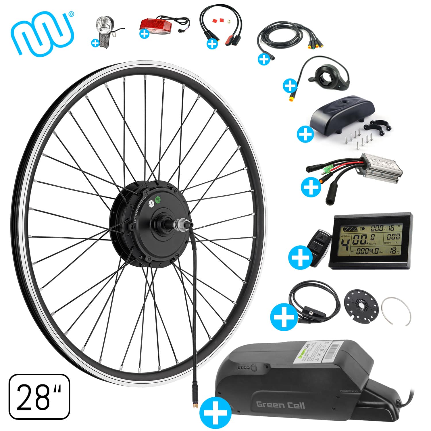 Der originale windmeile© E-Bike Umbausatz mit Vorderradnabenmotor zeichnet sich durch seine hohe Qualität und Kompatibilität aus. Mit diesem Umbausatz lässt sich nahezu jedes Fahrrad kinderleicht auf ein E-Bike / Pedelec umrüsten. Ein passender Akku ist im Lieferumfang enthalten. Der große Vorteil unserer getriebeübersetzten Nabenmotoren ist, dass das umgebaute Rad auch wie ein ganz normales Fahrrad betrieben werden kann, wenn gerade keine elektrische Unterstützung gewünscht wird. Es kommt zu keinen zusätzlichen Reibungsverlusten oder Tretwiderständen. Die Komponenten sind technisch präzise aufeinander abgestimmt und bieten dadurch ein einzigartiges E-Bike Erlebnis. Der Motor überzeugt mit seiner Laufruhe und Leistungsstärke auch bei niedrigen Drehzahlen. Trotz seines geringen Gewichtes und der kompakten Größe kann der Nabenmotor ein hohes Drehmoment aufweisen. Alle Komponenten sind gemäß höchsten Industriestandards geprüft, nach denen weder Staub noch Nässe eindringen darf. Diese robuste Qualität und hochwertige Verarbeitung schätzen unsere Kunden im täglichen Einsatz, sei es auf dem Weg zur Arbeit oder einfach nur beim Fahrradsport. Der Vorderradmotor verfügt über eine Standard-6-Loch Bremsscheibenaufnahme, die Sie zur Montage Ihrer gegebenenfalls vorhandenen Bremsscheibe verwenden können. Unsere Motoren sind sowohl für Disc- (Scheibenbremsen) als auch V-Brakes (Backenbremsen) geeignet.