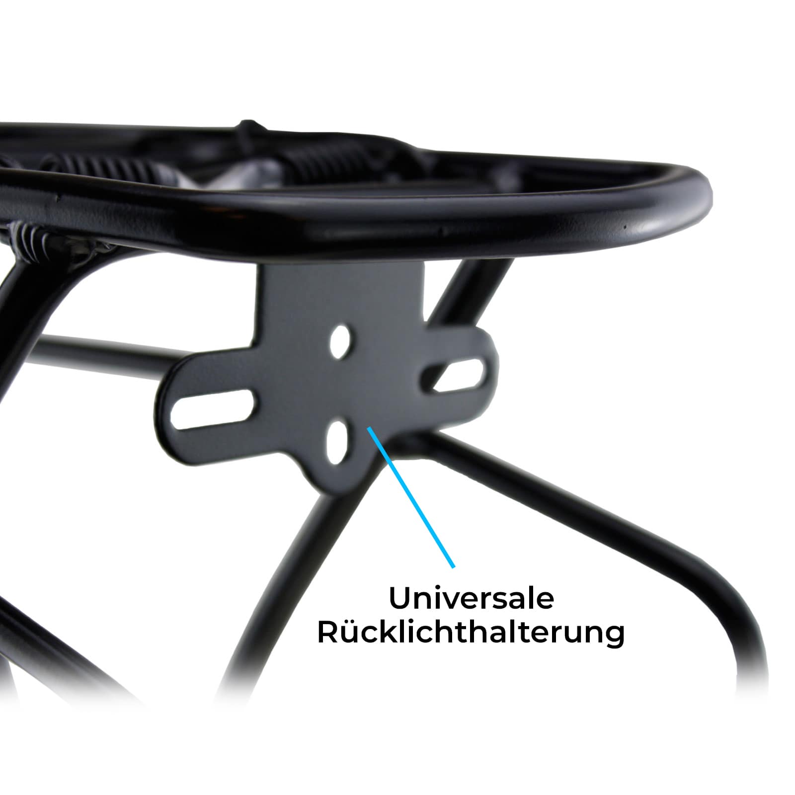 Der Gepäckträger verfügt zusätzlich über eine Halteplatte für Rückenlichter. Dort können Sie Ihr Licht einfach mit Kontermuttern anbringen.